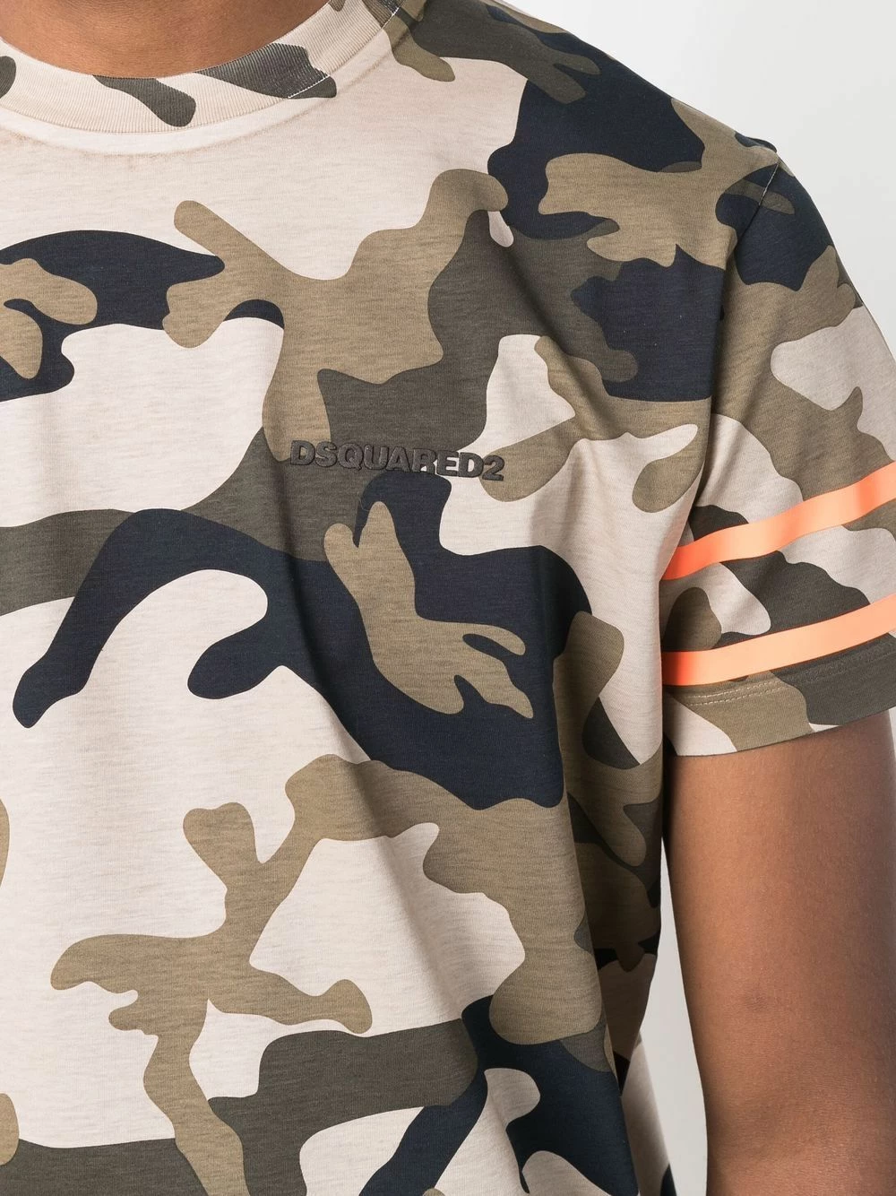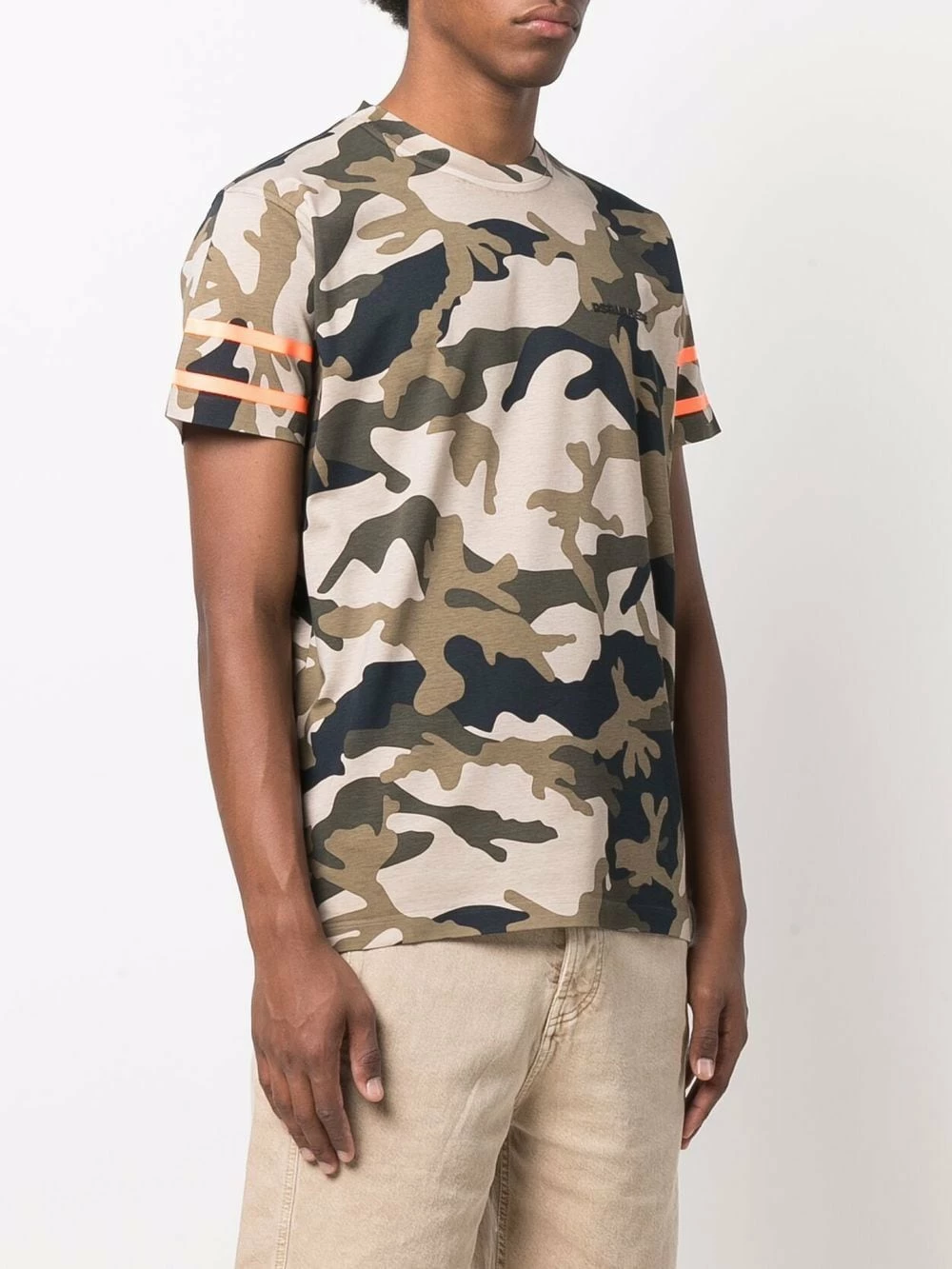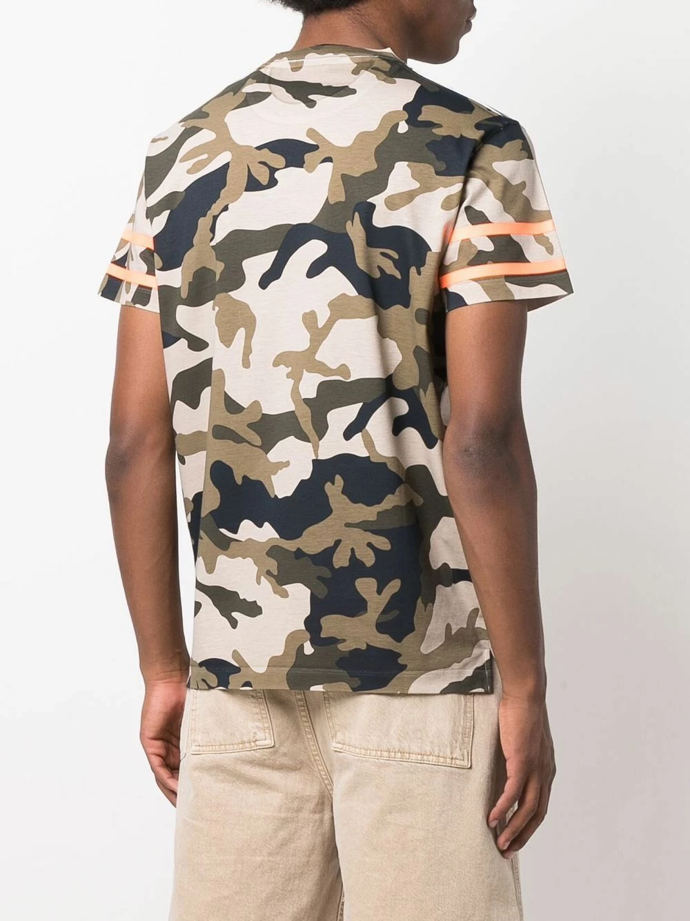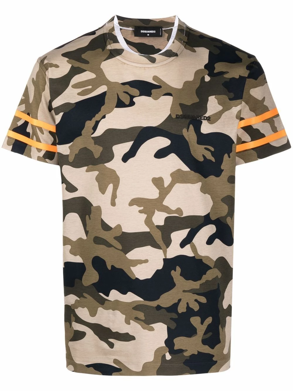 Imprimé camouflage, logo imprimé à la poitrine, manches courtes, ourlet droit. Couleur : vert. Matière : coton.