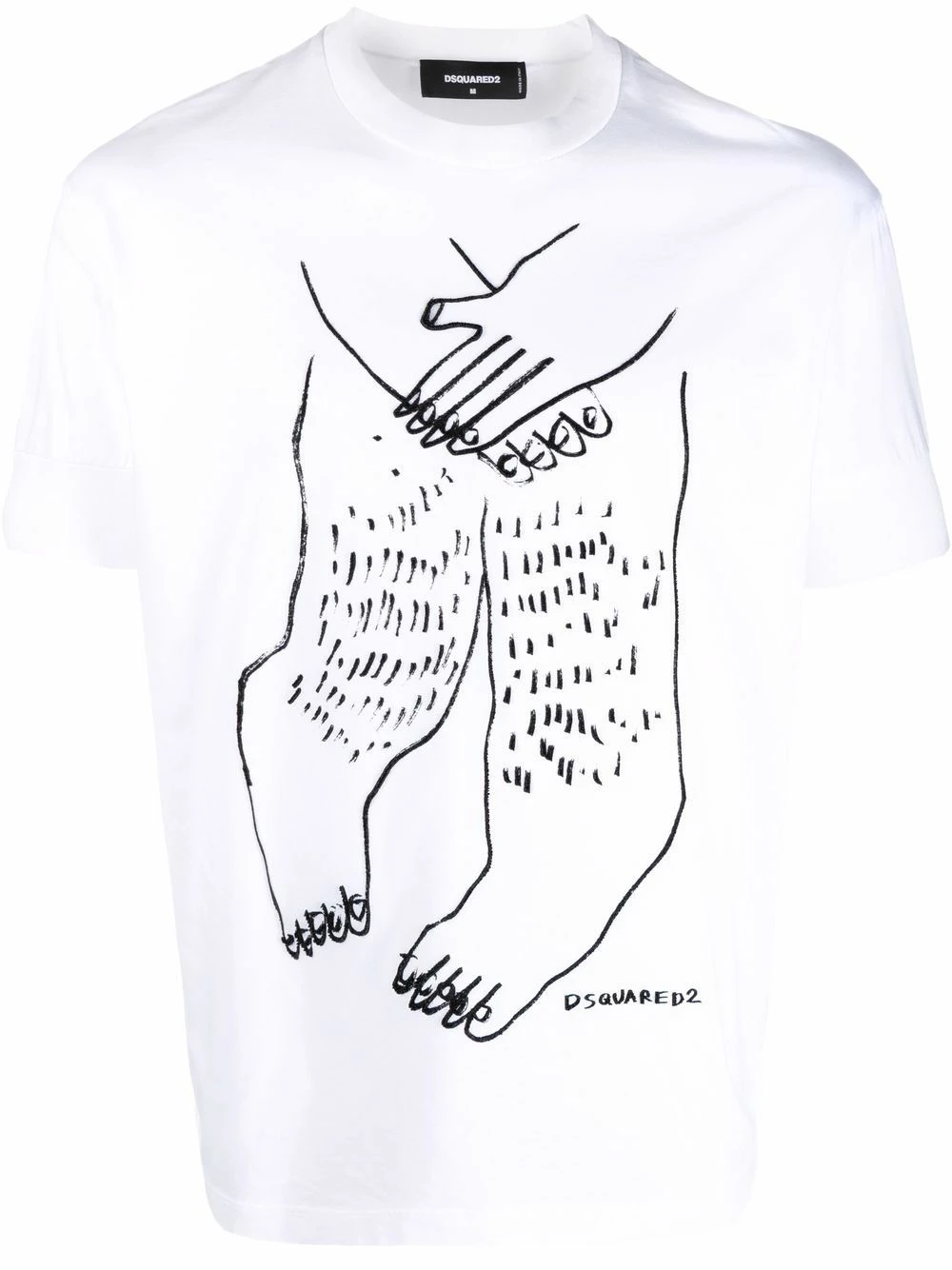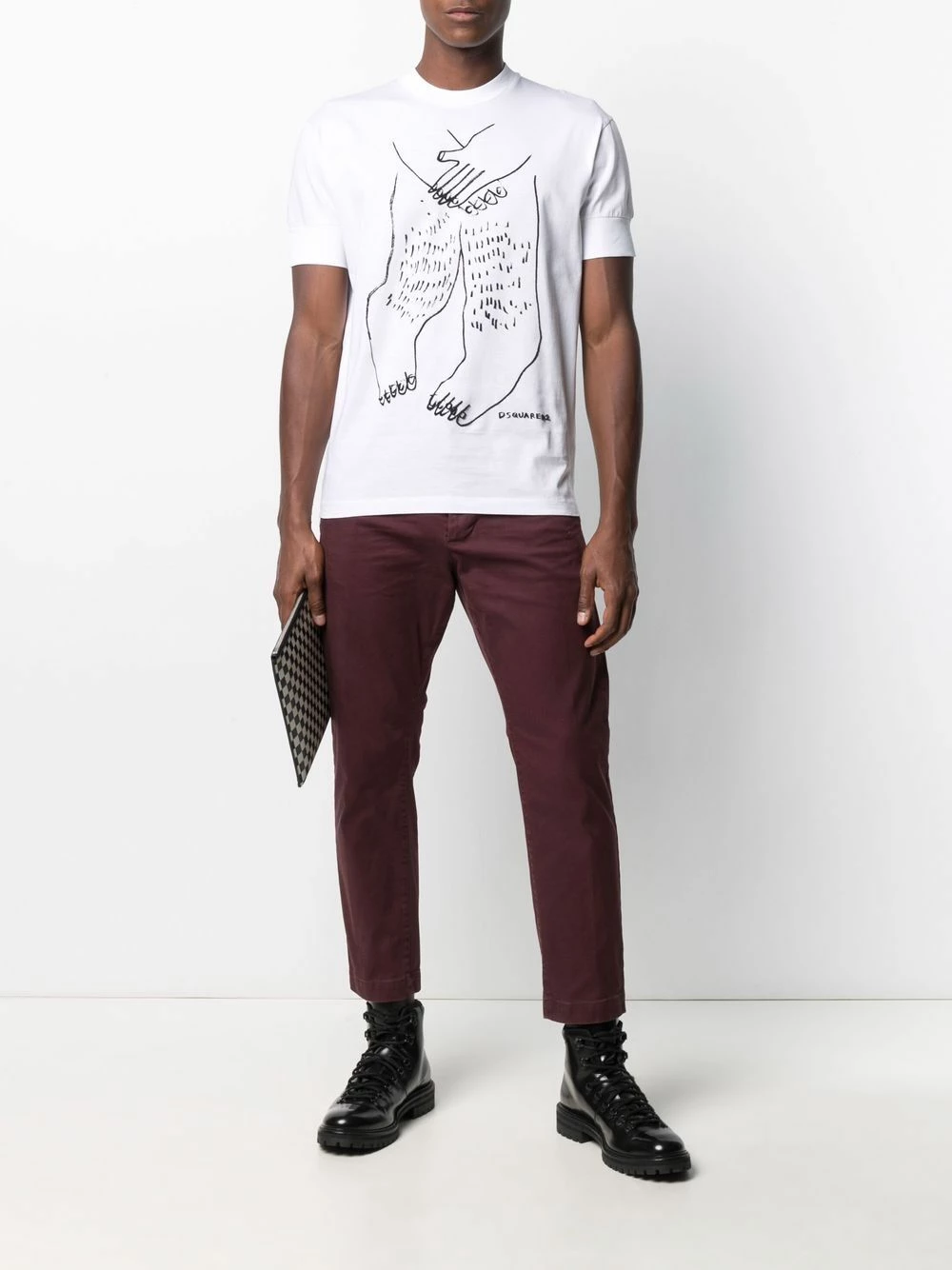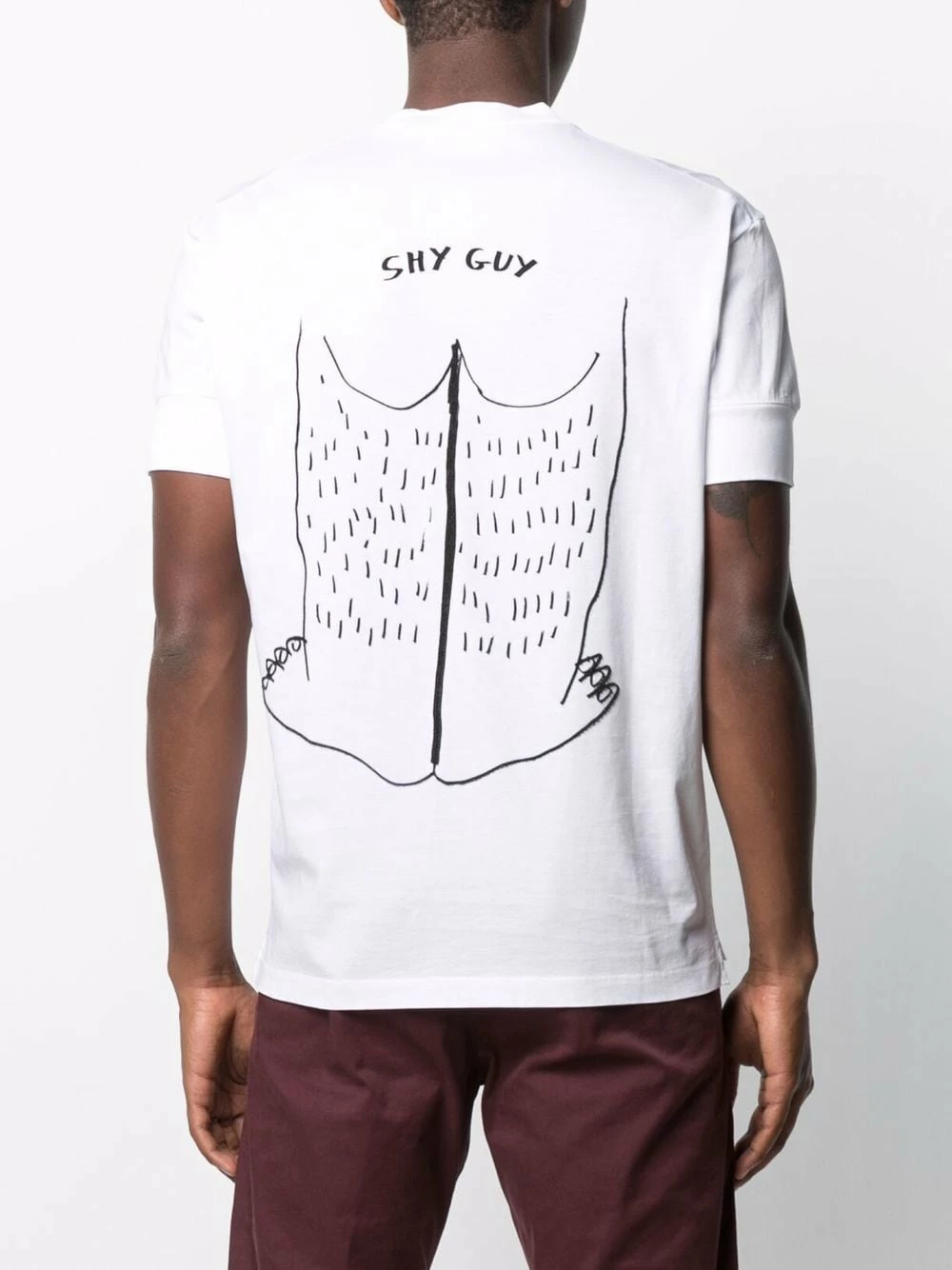 Motif imprimé, encolure ras du cou, manches courtes, ourlet droit. Couleur : blanc. Matière : coton.