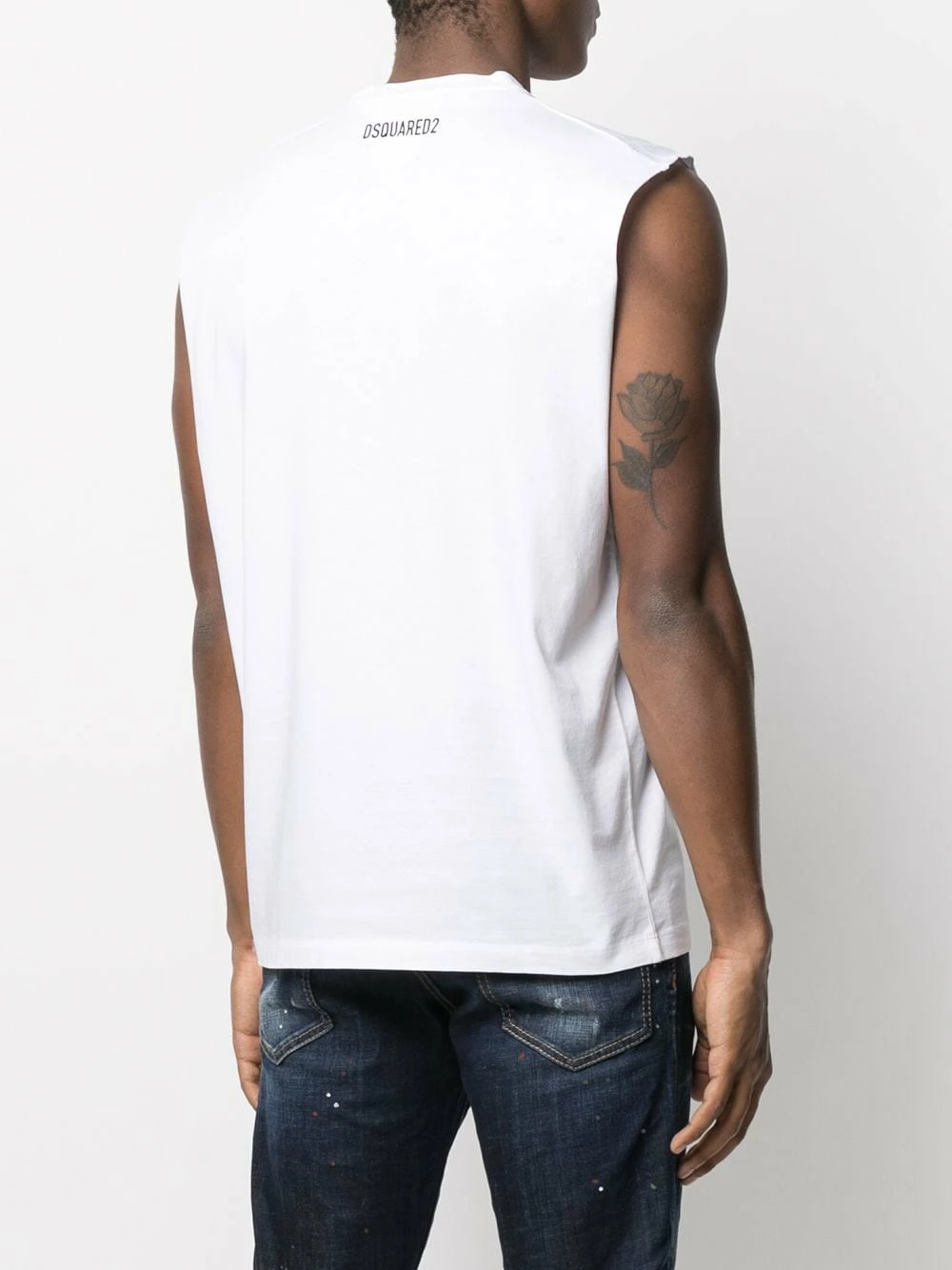 Logo imprimé à la poitrine, encolure ronde, design sans manches, ourlet droit. Couleur : blanc. Matière : coton.