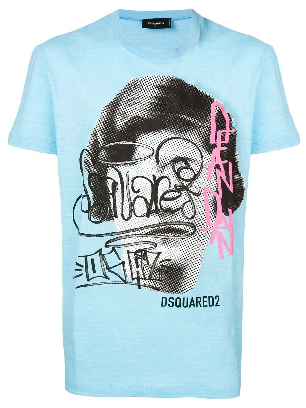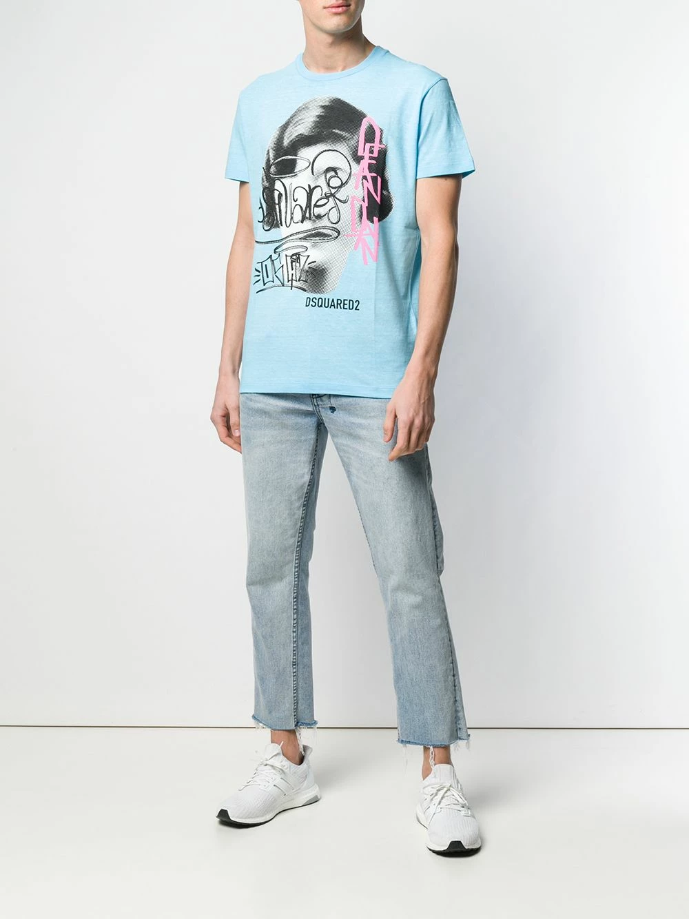 T-shirt à imprimé graphique en coton Dsquared2 avec encolure ronde, manches courtes, imprimé devant et ourlet droit.