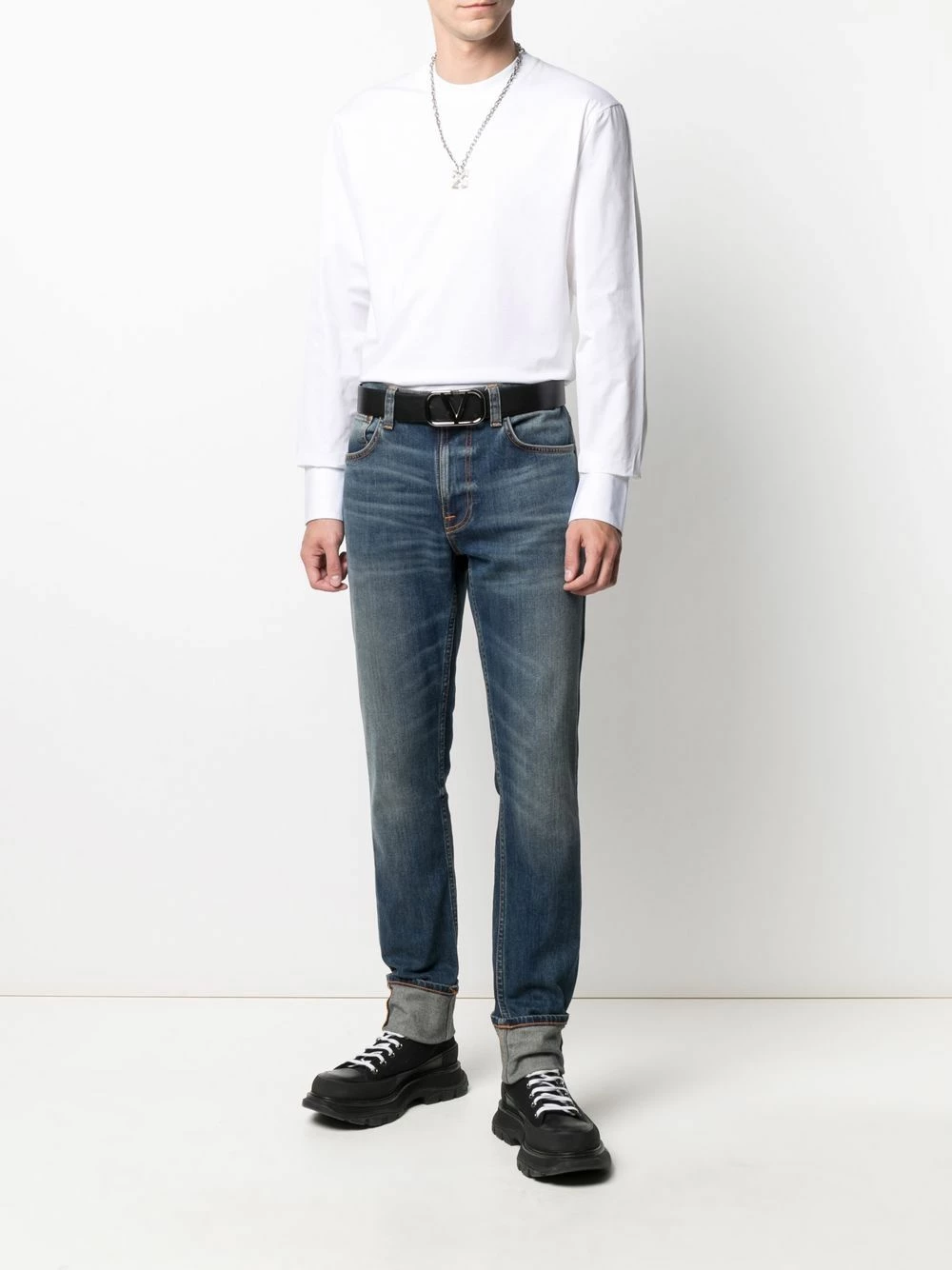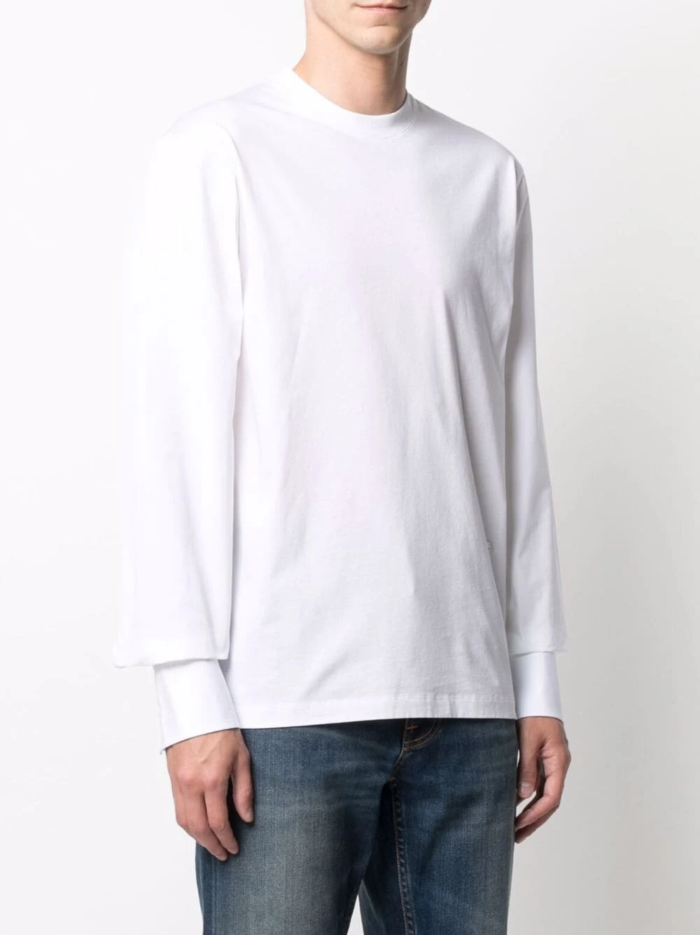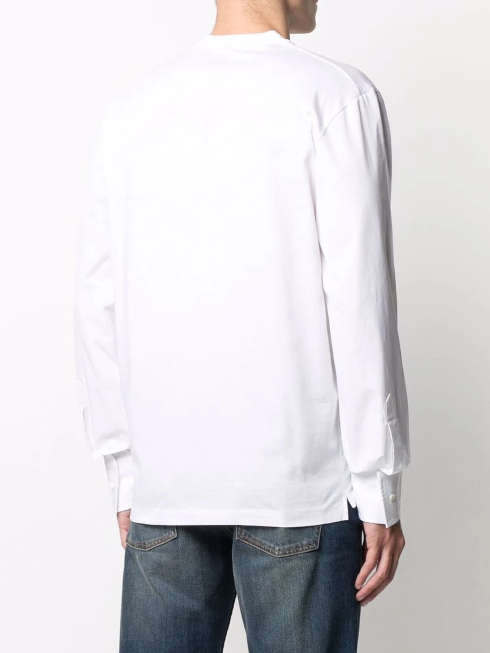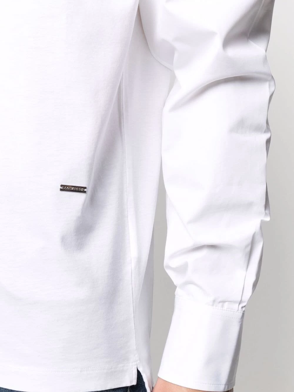 Appliqué logo, design à empiècements, encolure ras du cou, manches longues, poignets boutonnés. Couleur : blanc. Matière : coton.