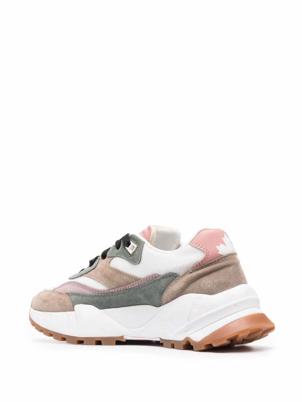 Bout rond, semelle plate en caoutchouc, fermeture à lacer sur le devant, semelle intérieure à logo, design à empiècements.