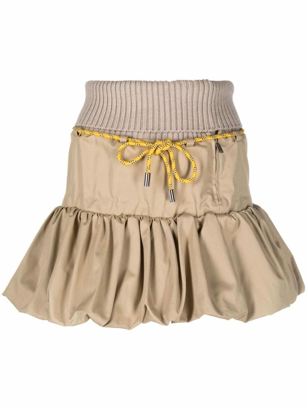 Ourlet bouffant, taille nouée. Couleur : marron. Matière : coton.