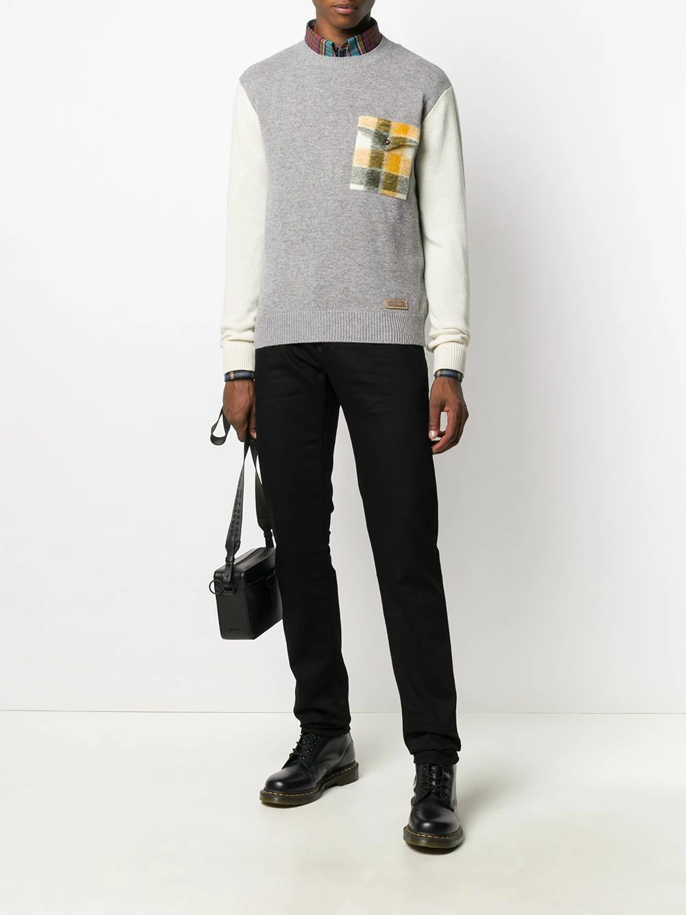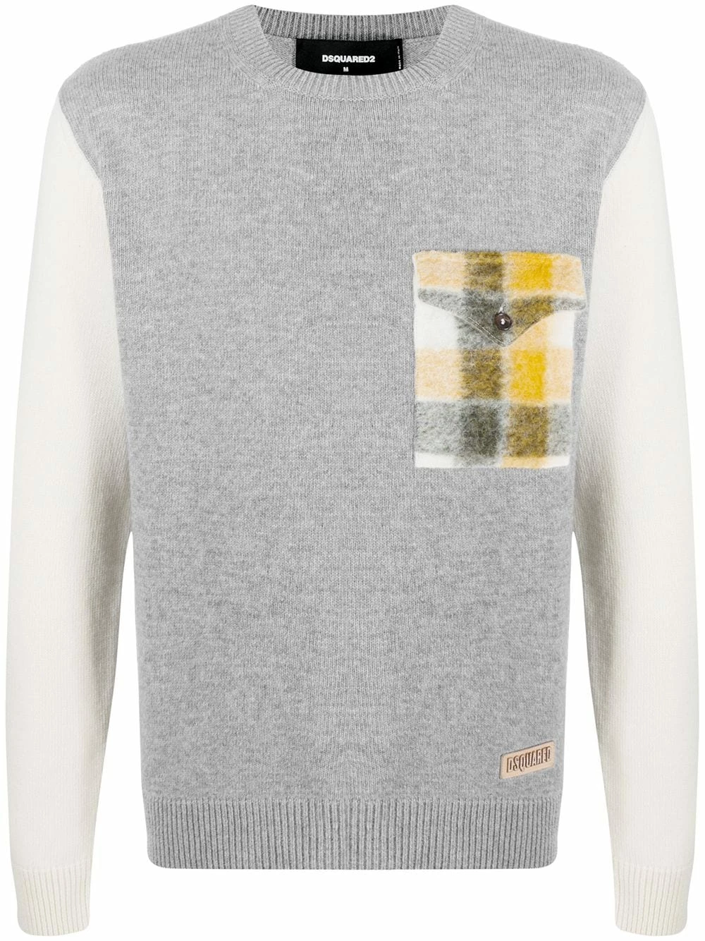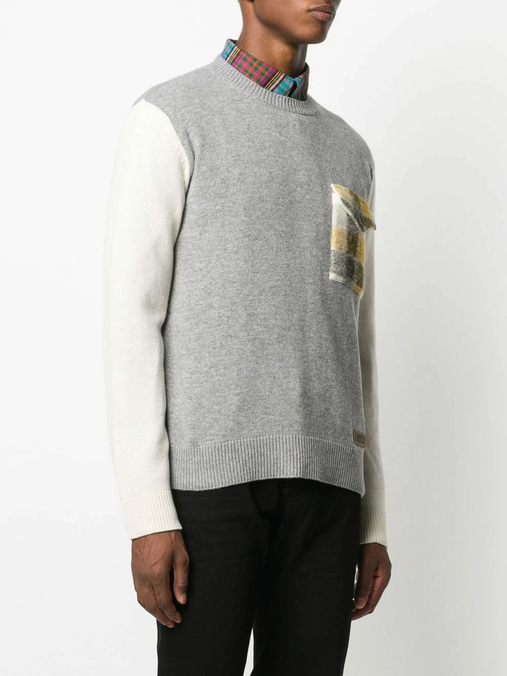 Encolure ras du cou, manches longues, poche poitrine à rabat, poignets nervurés, ourlet nervuré, patch logo sur le devant. Couleur : gris.
