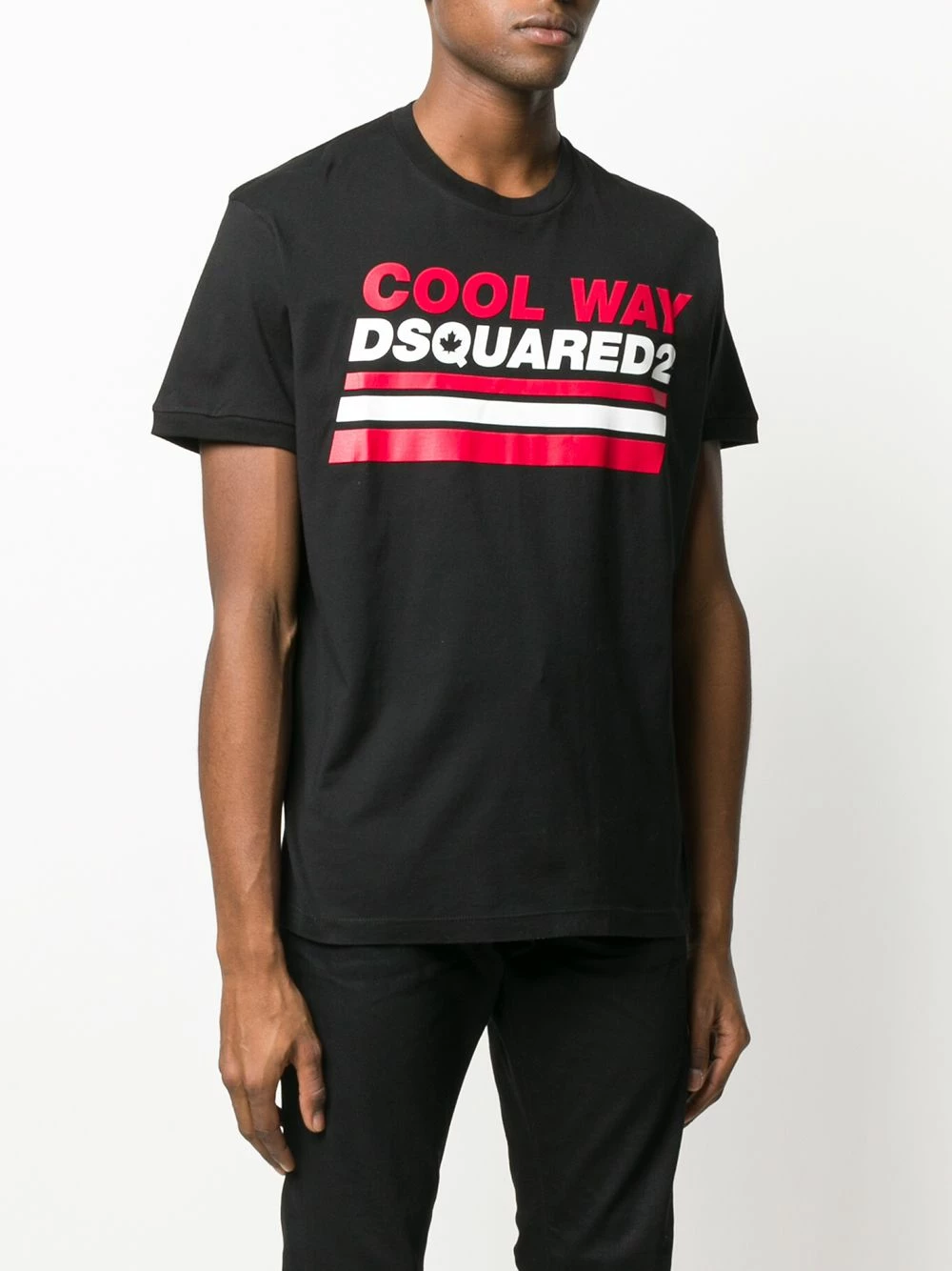 T-shirt à logo imprimé en coton Dsquared2 avec encolure ronde, manches courtes et ourlet droit. Couleur : noir.