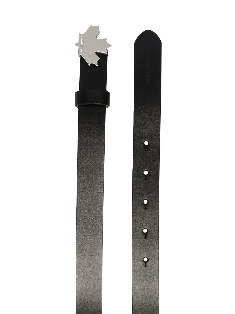 Détail de boucle à logo, taille ajustable. Couleur : noir. Matière : cuir de veau.