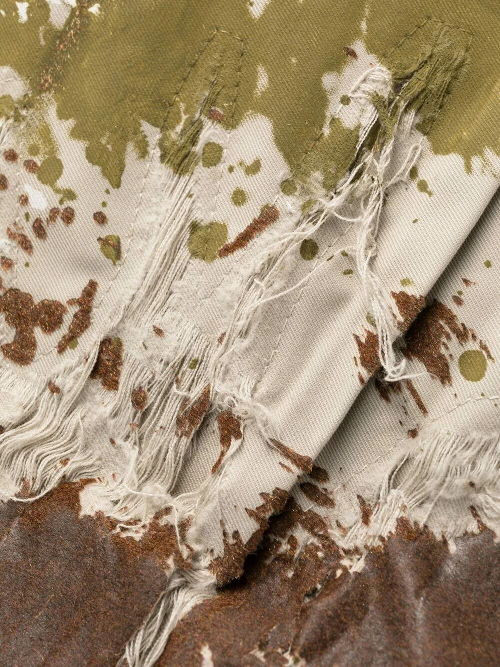 Effet taches de peinture, passants de ceinture, logo imprimé à l’arrière, fermeture à zip et boutons sur le devant, poches arrière passepoilées, longueur crop, coupe fuselée. Matière : coton.