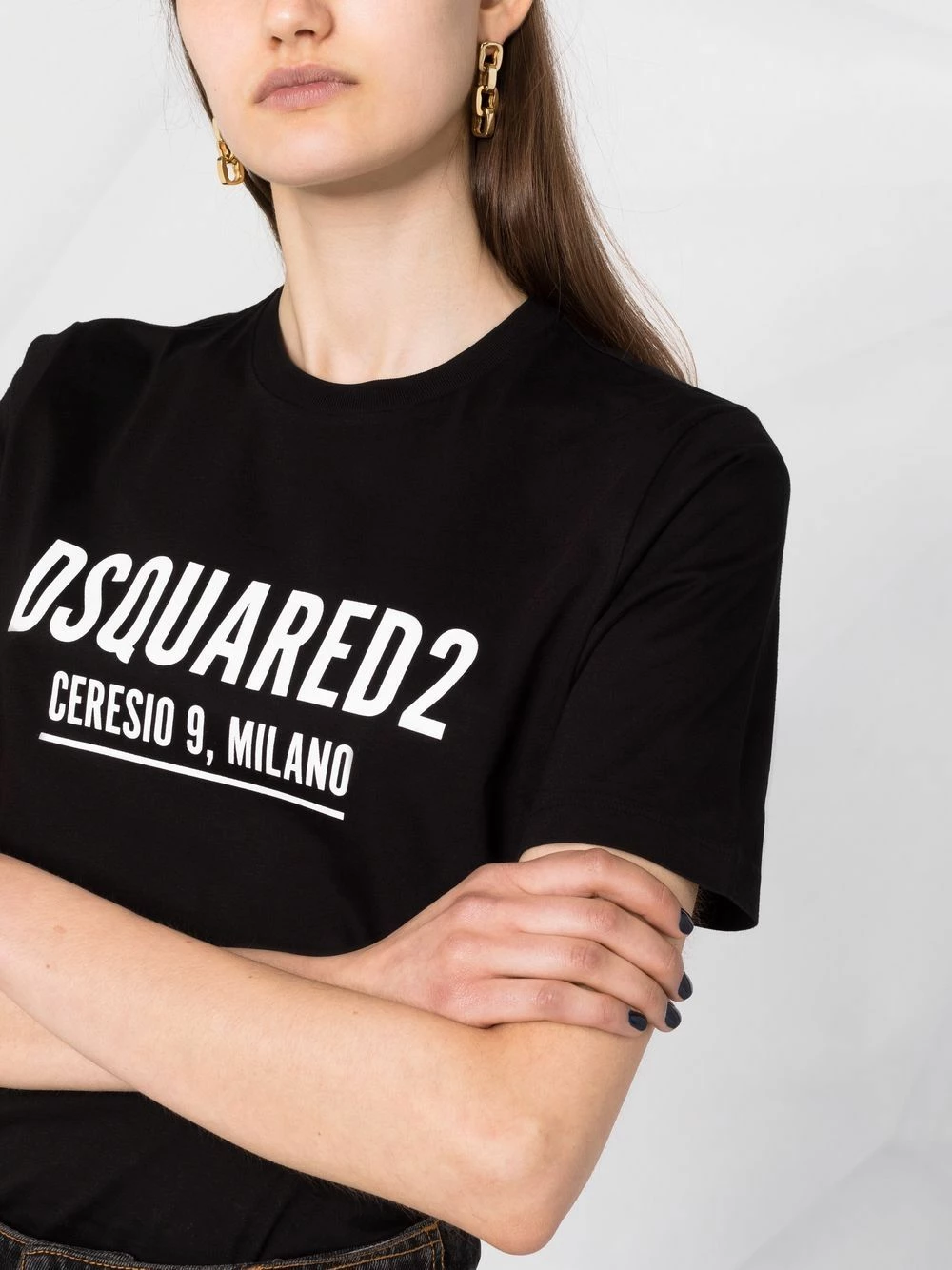 Logo imprimé et orné, encolure ronde, manches courtes, ourlet droit. Matière : coton.