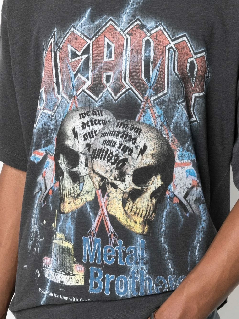 Tricot point jersey, tête de mort imprimée sur l’avant, imprimé graphique, logo imprimé à l’arrière, logo imprimé sur le devant, encolure ronde, manches courtes, ourlet droit. Matière : coton mélangé.