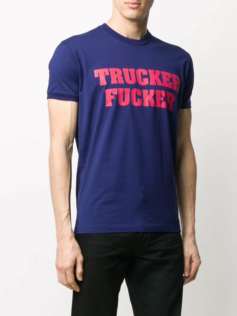 T-shirt à détail de slogan en coton Dsquared2 avec encolure ras du cou, manches courtes, détail de slogan et ourlet droit.
