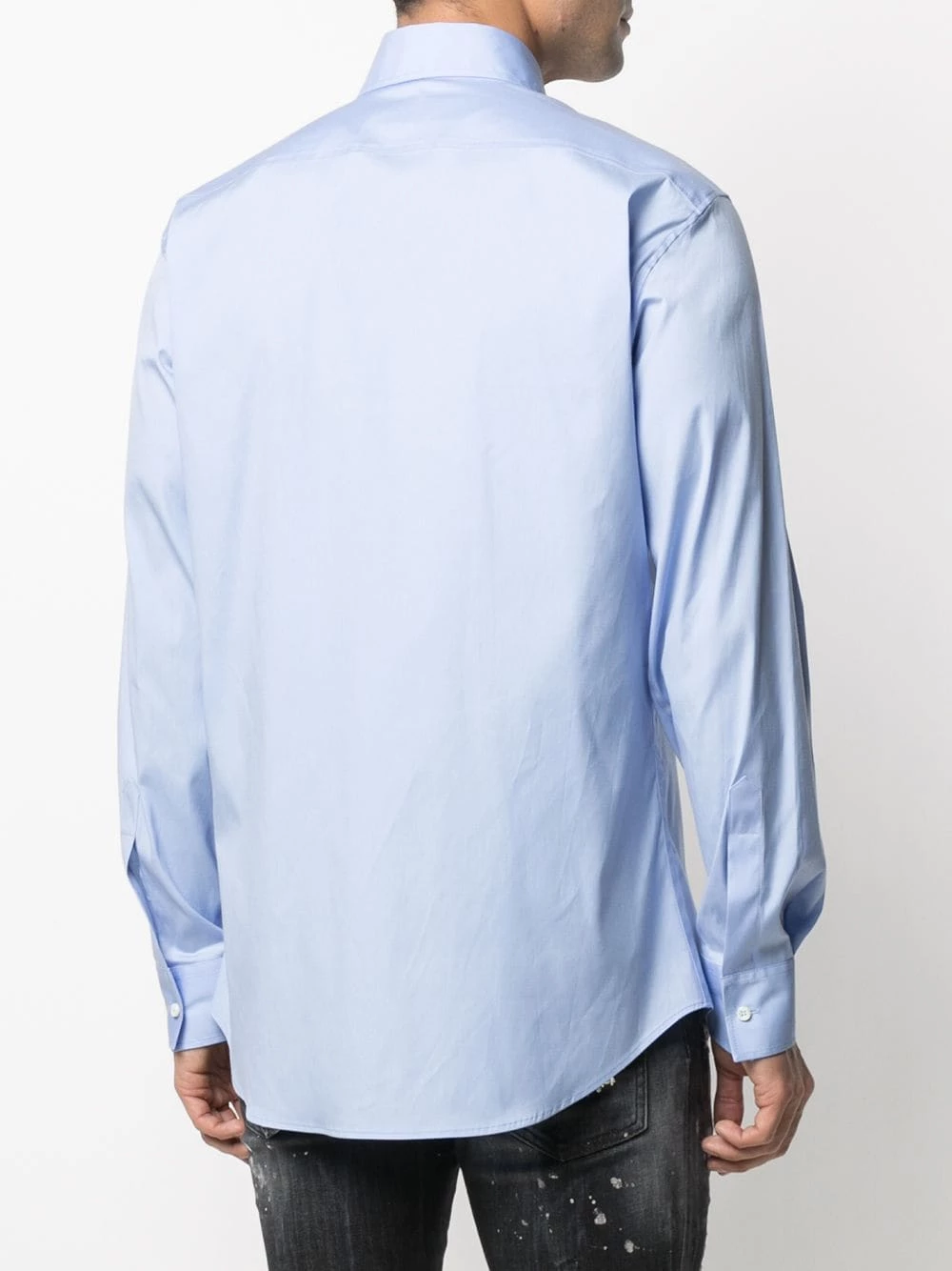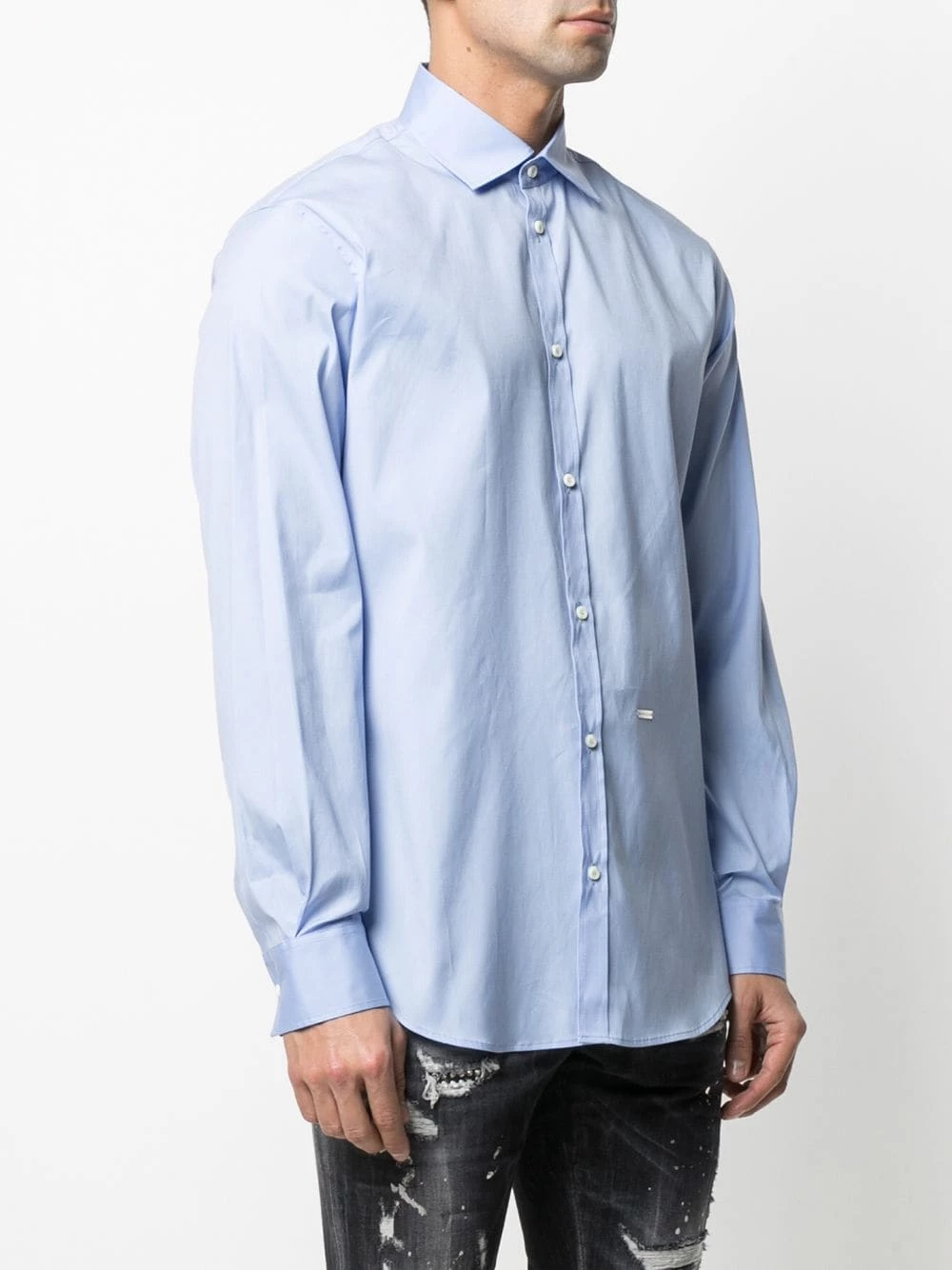 Col pointu, boutonnière sur le devant, manches longues, poignets boutonnés, ourlet incurvé.
