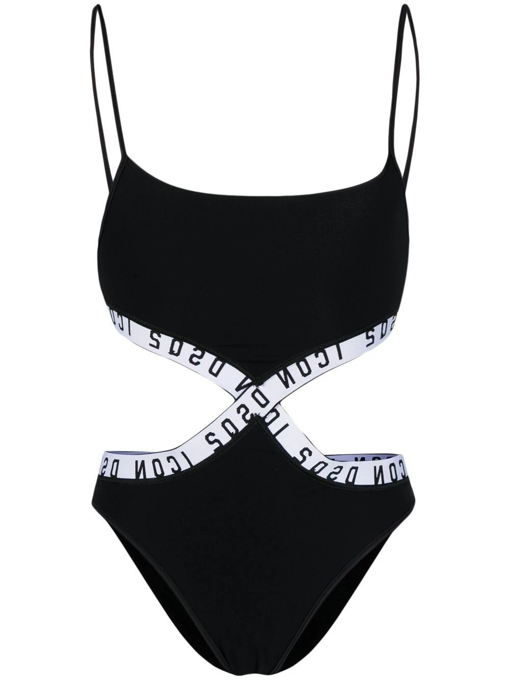 Motif Icon signature, finitions à logo, détails de découpes, design sans manches, encolure ronde. Couleur : noir. Veillez à essayer les maillot de bain par-dessus vos propres sous-vêtements.
