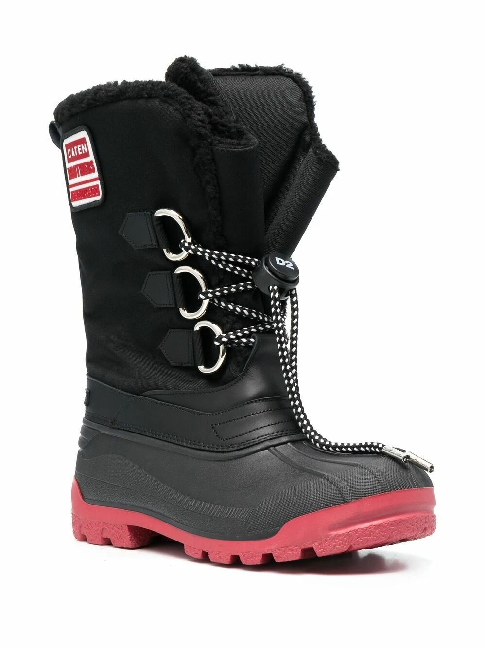 Patch logo sur le côté, doublure en peau lainée artificielle, fermeture à lacer sur le devant, bout en amande, semelle crantée en caoutchouc. Couleur : noir.
