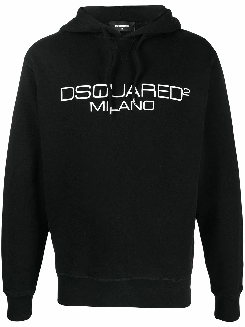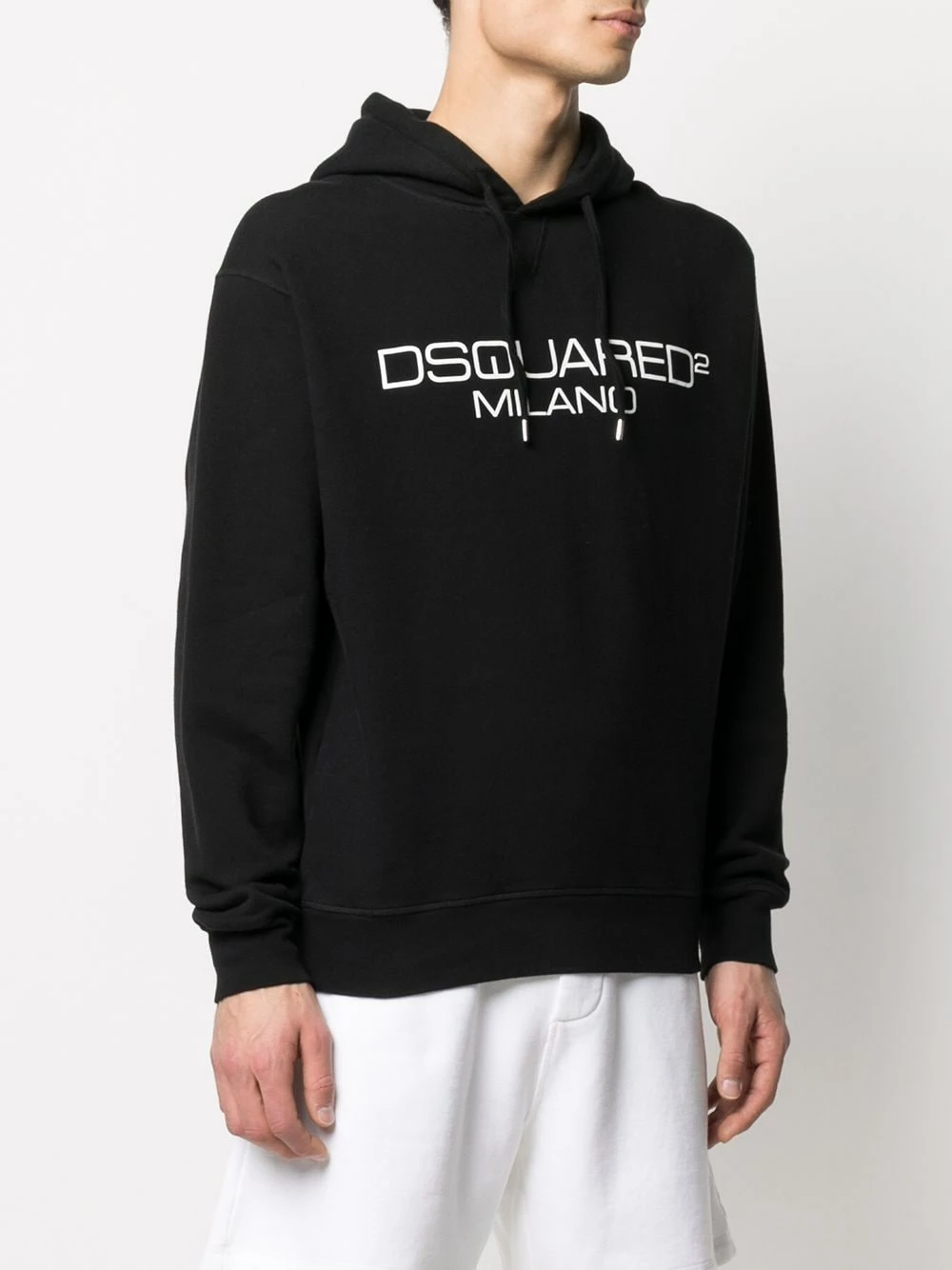 Tricot point jersey, logo brodée sur la poitrine, détail nervuré, capuche à lien de resserrage. Couleur : Noir. Matière : coton.