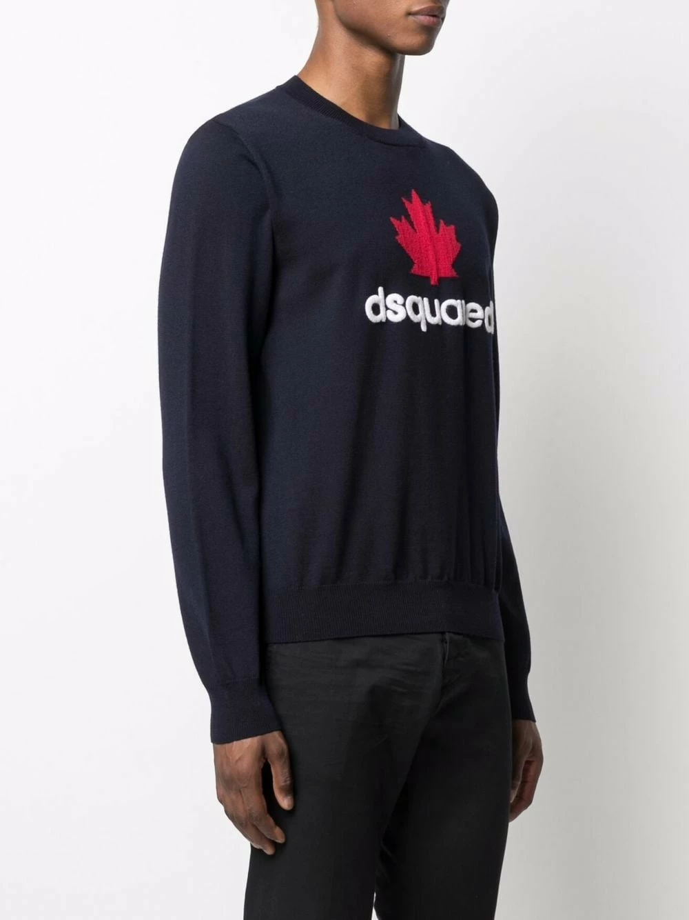 Tricot point jersey, logo brodé, encolure ras du cou, poignets élastiqués, ourlet élastiqué. Matière : laine vierge.