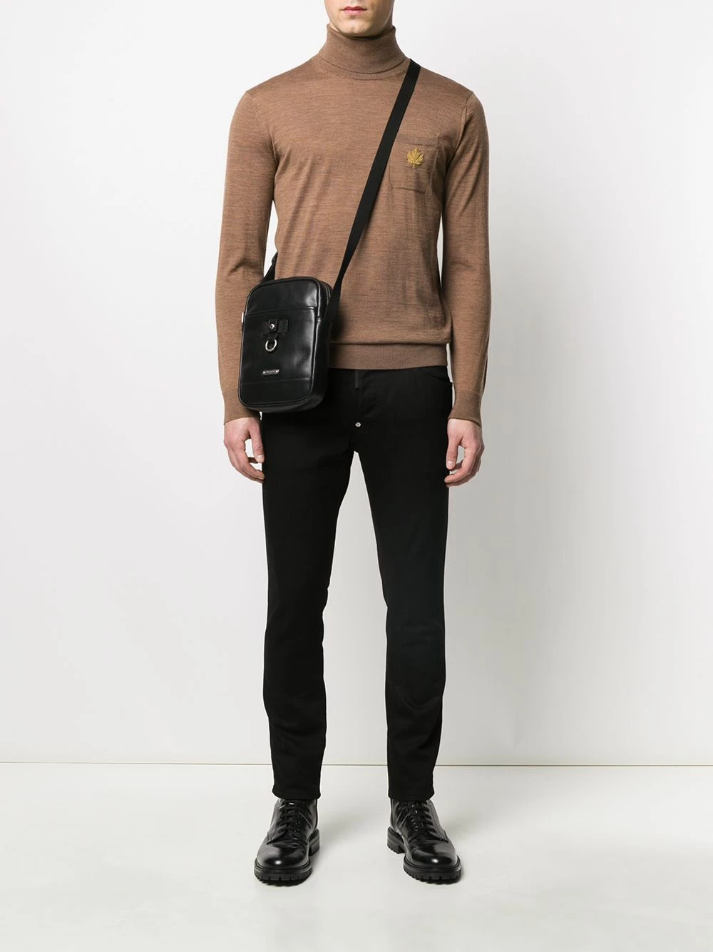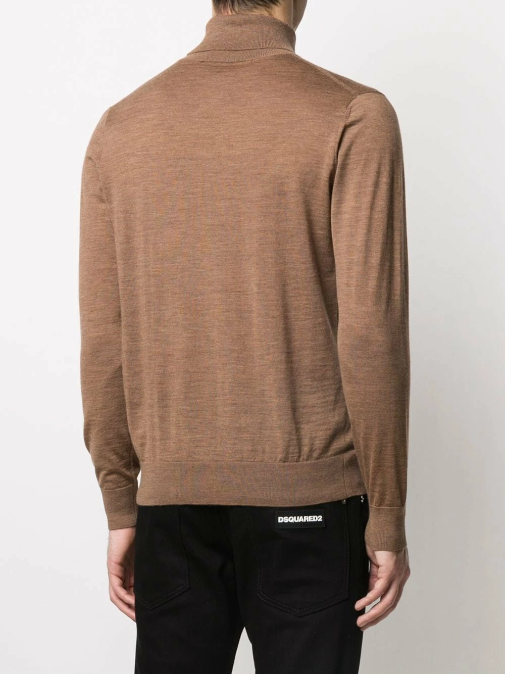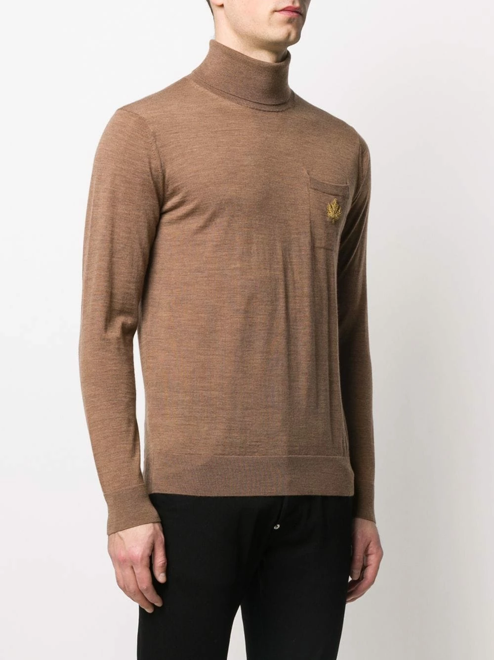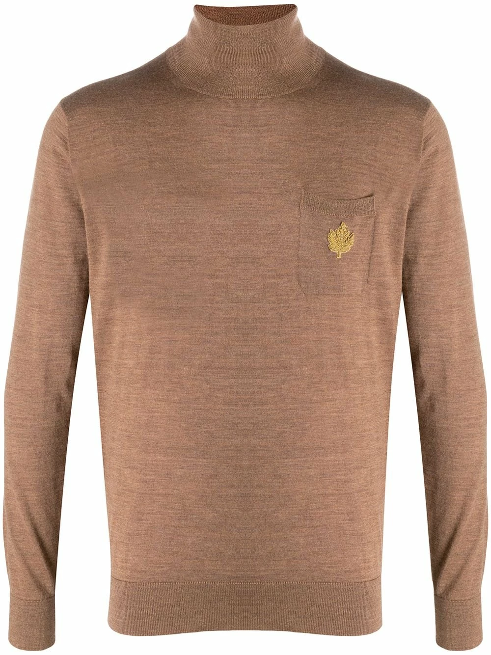 Pull à applique logo en laine Dsquared2 avec col roulé nervuré, manches longues, ourlet et poignets nervurés, poche poitrine plaquée, appliques et ourlet droit.