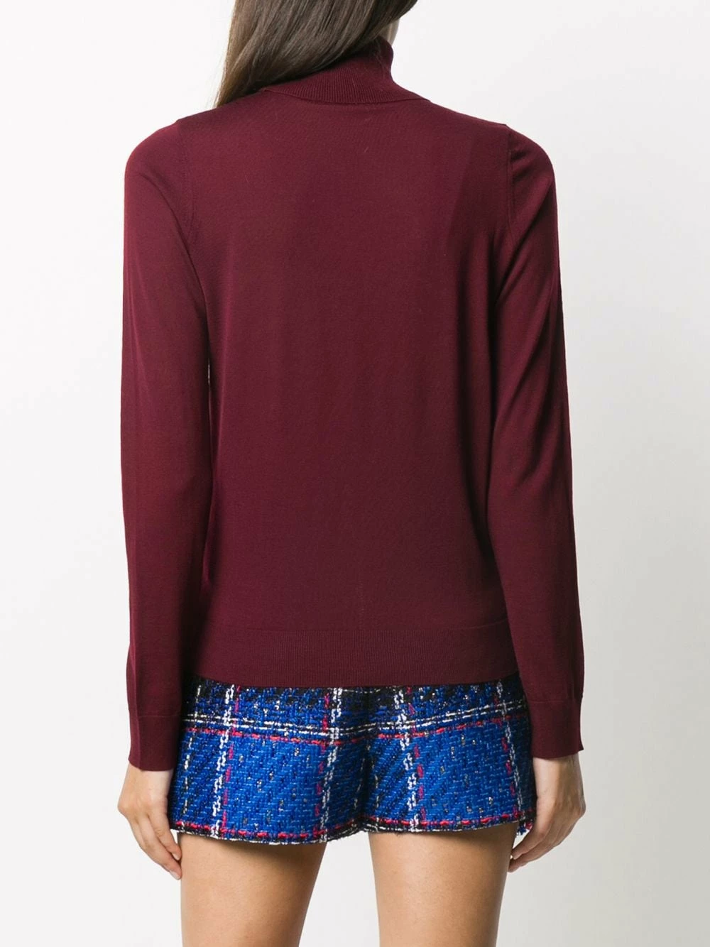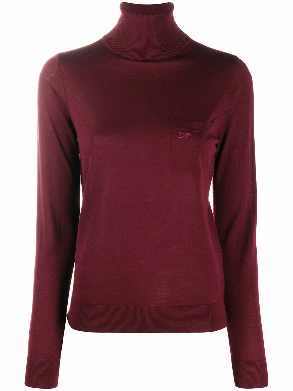 Design tricoté, bord en maille côtelée, logo brodée sur la poitrine, col roulé, manches longues, poche poitrine plaquée.