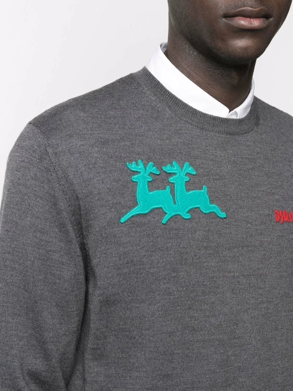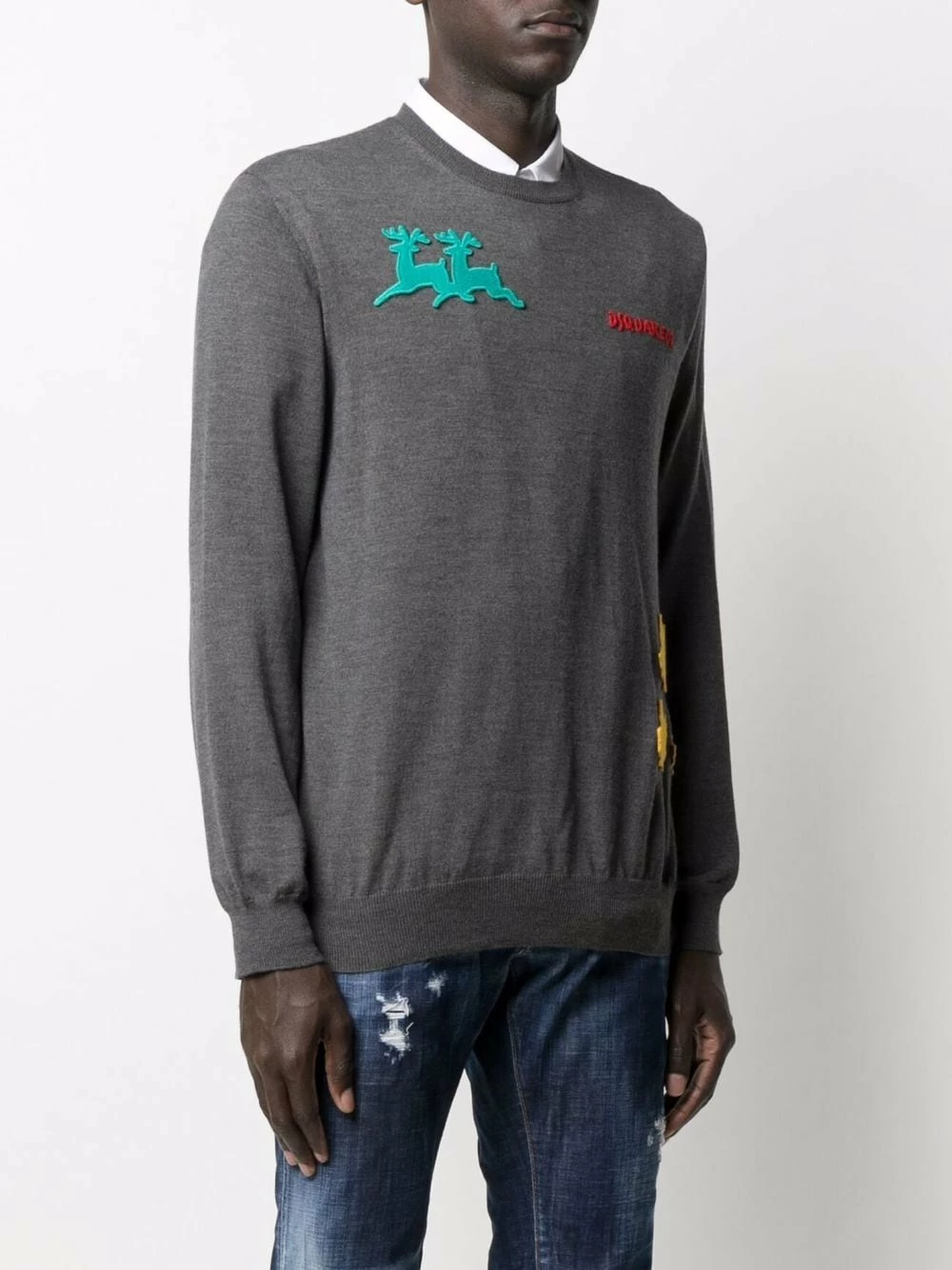 Logo brodé, broderies, encolure ronde, manches longues. Couleur : gris. Matière : laine vierge.