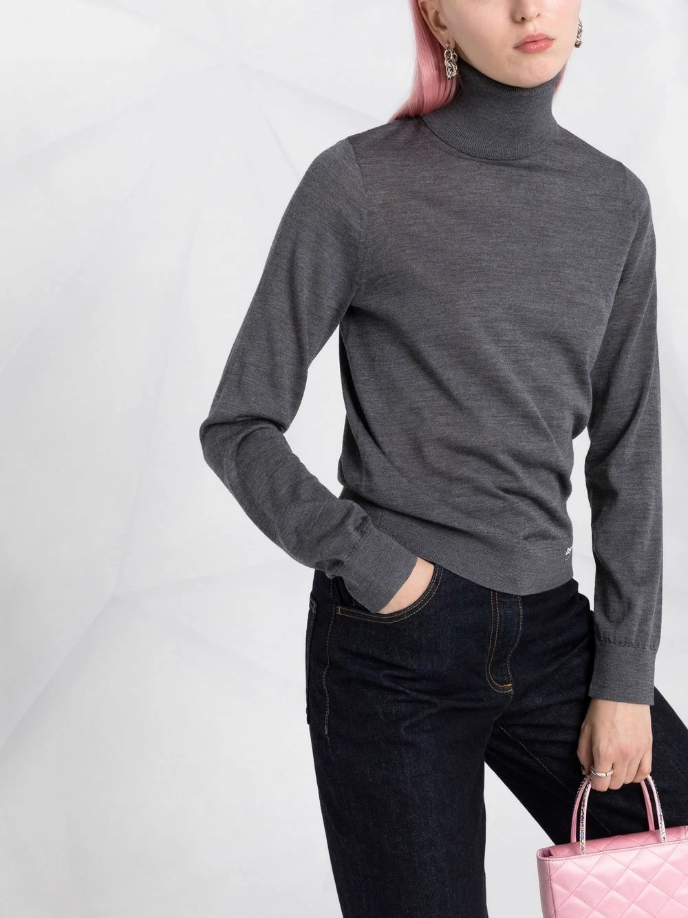 Design en maille, détail nervuré, ourlet à logo imprimé, col roulé, manches longues. Couleur : gris. Matière : laine.