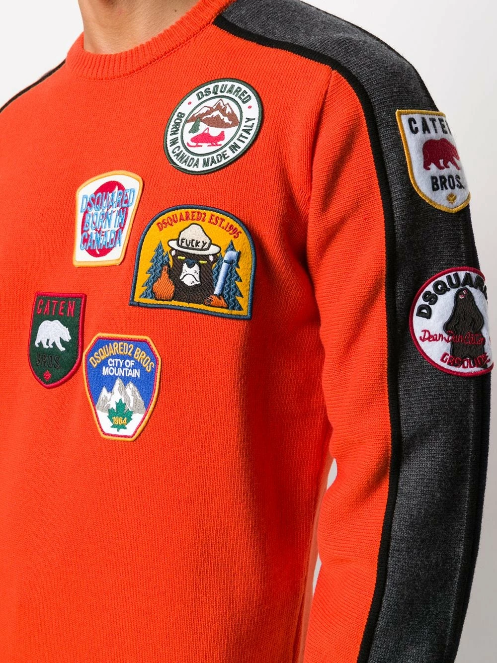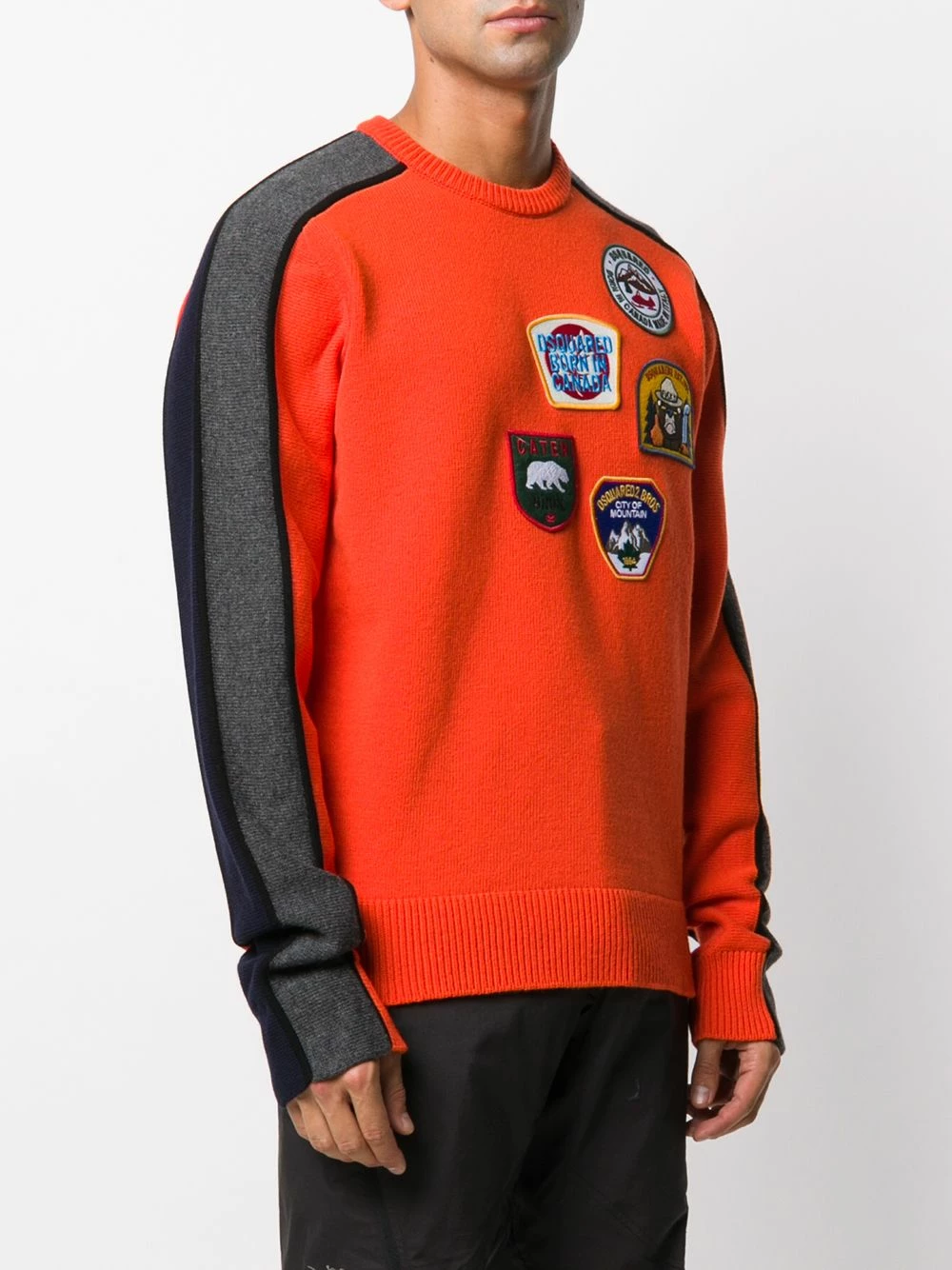 Patchs logo sur le devant, design tricoté, encolure ras du cou, manches longues, empiècements contrastants, ourlet droit, bord en maille côtelée.