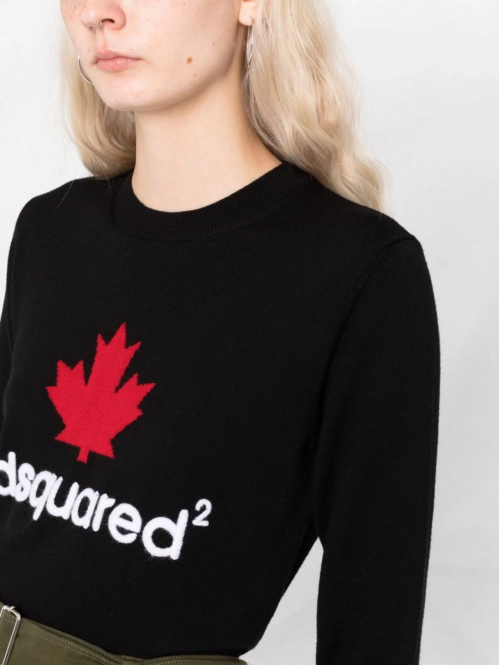 Maille fine, encolure ronde, logo imprimé sur le devant, manches longues. Matière : laine vierge.
