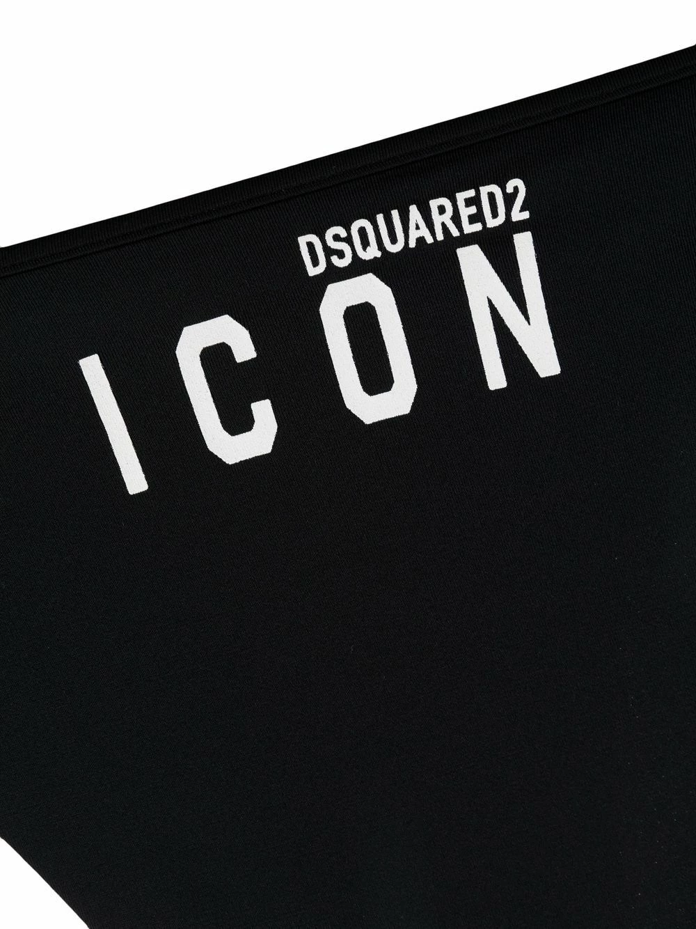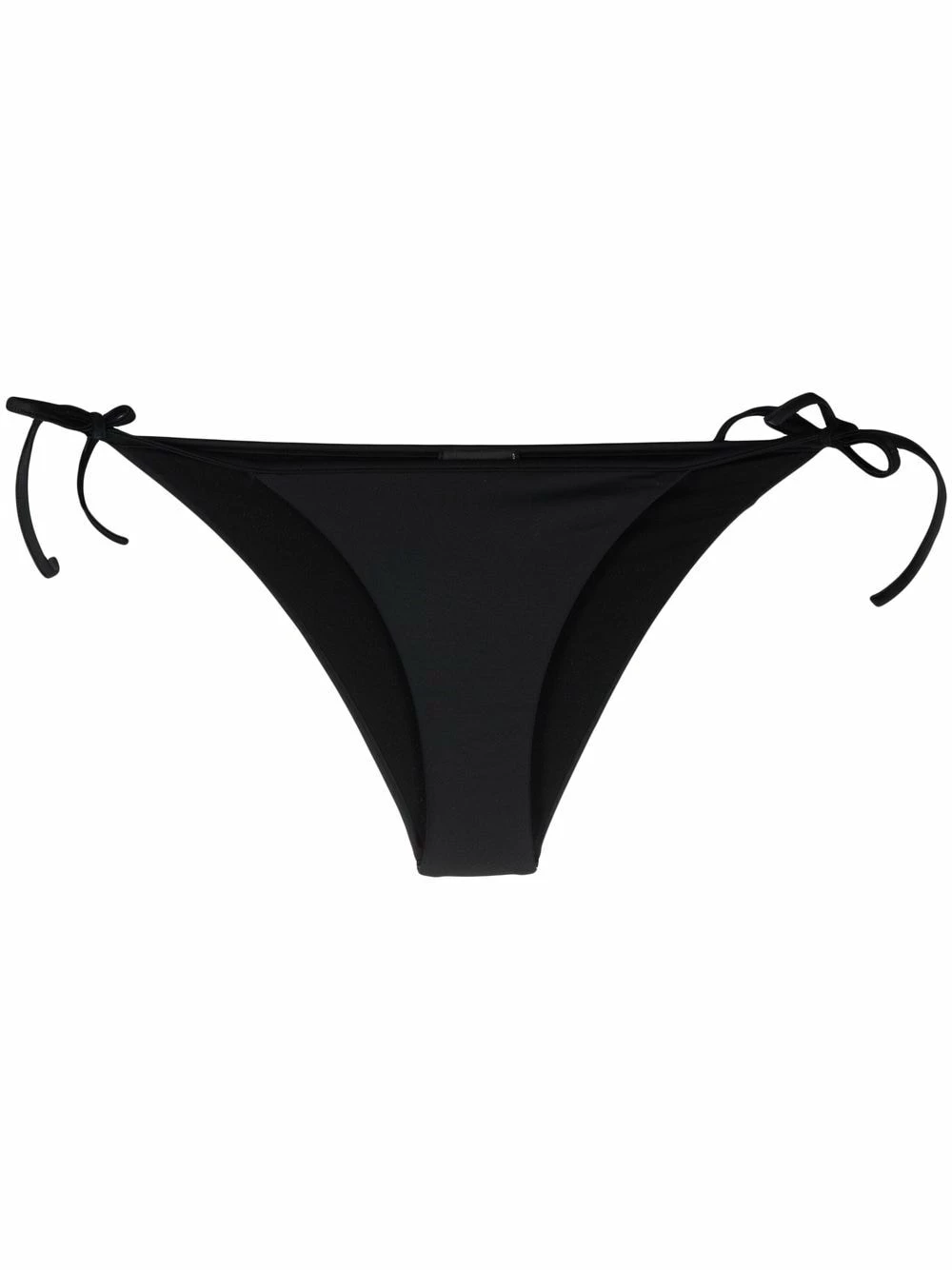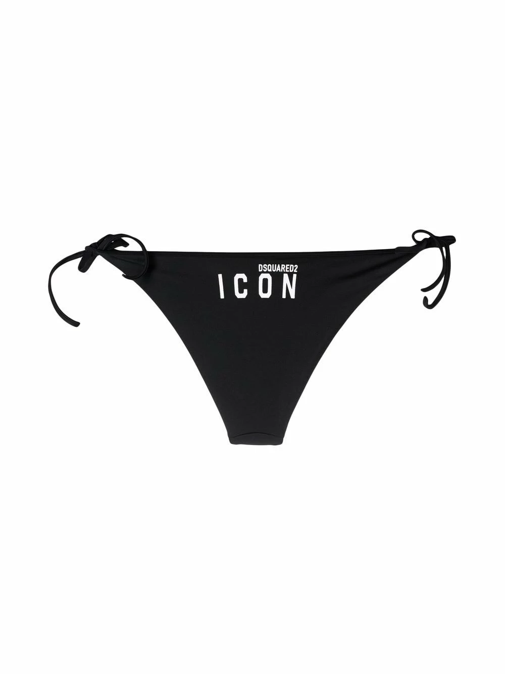 Modèle bicolore, slogan imprimé, forme triangulaire, taille basse, fermeture à nouer sur les côtés. Veillez à essayer les maillot de bain par-dessus vos propres sous-vêtements.