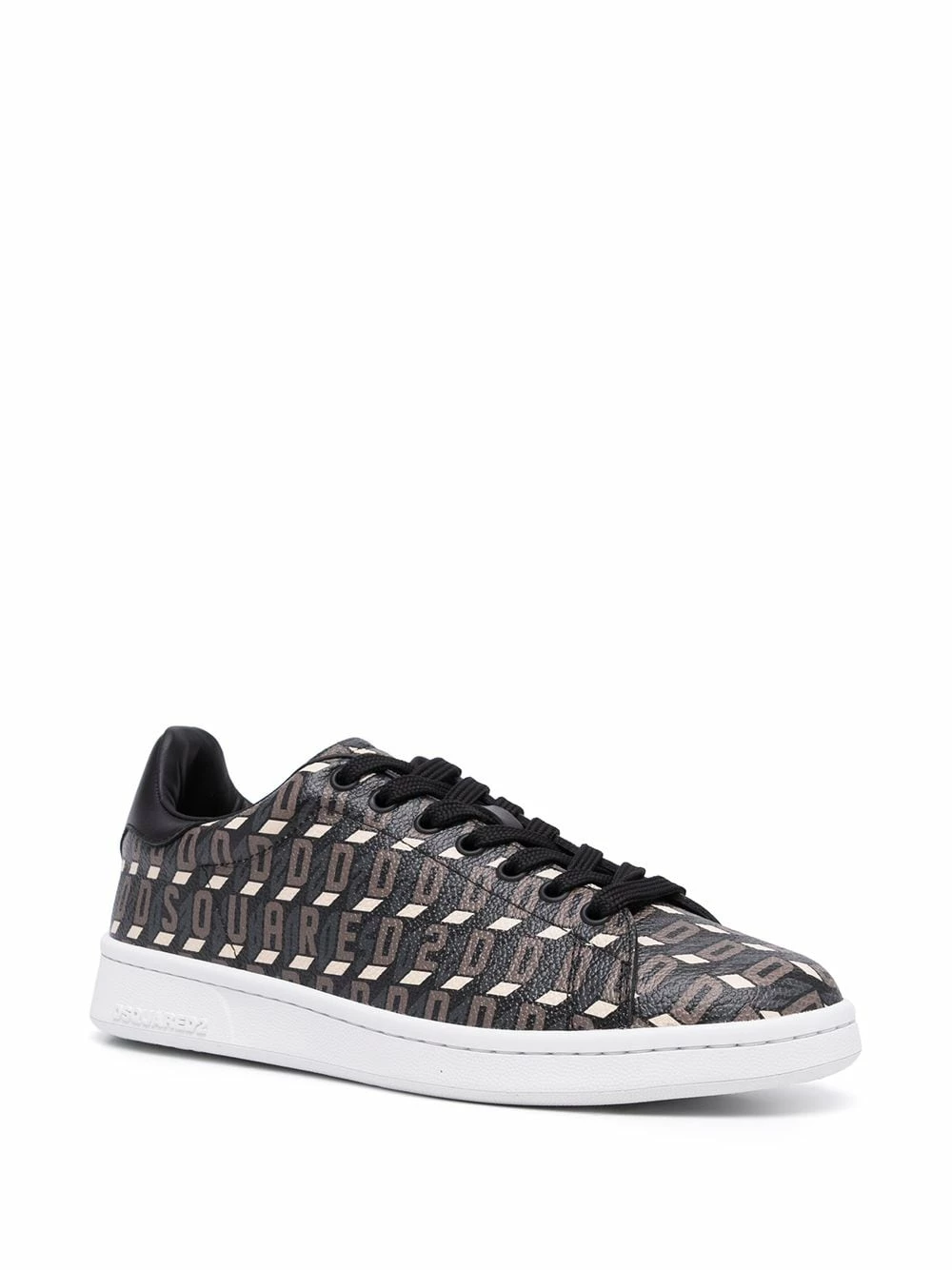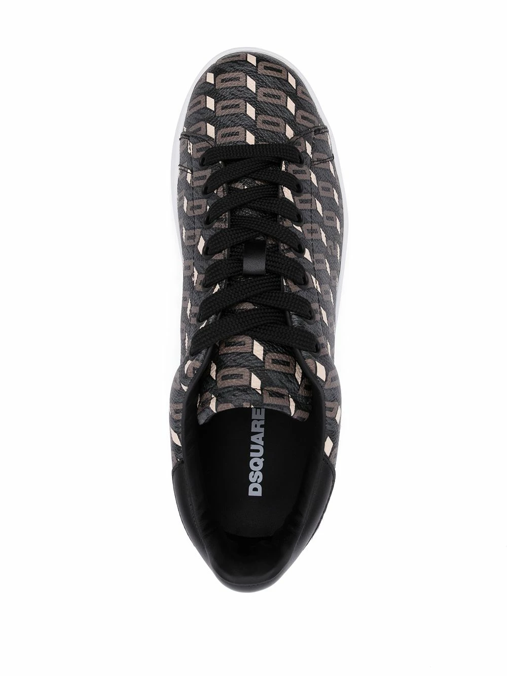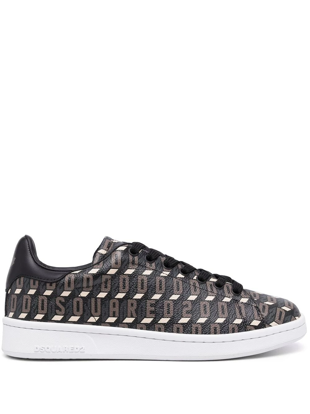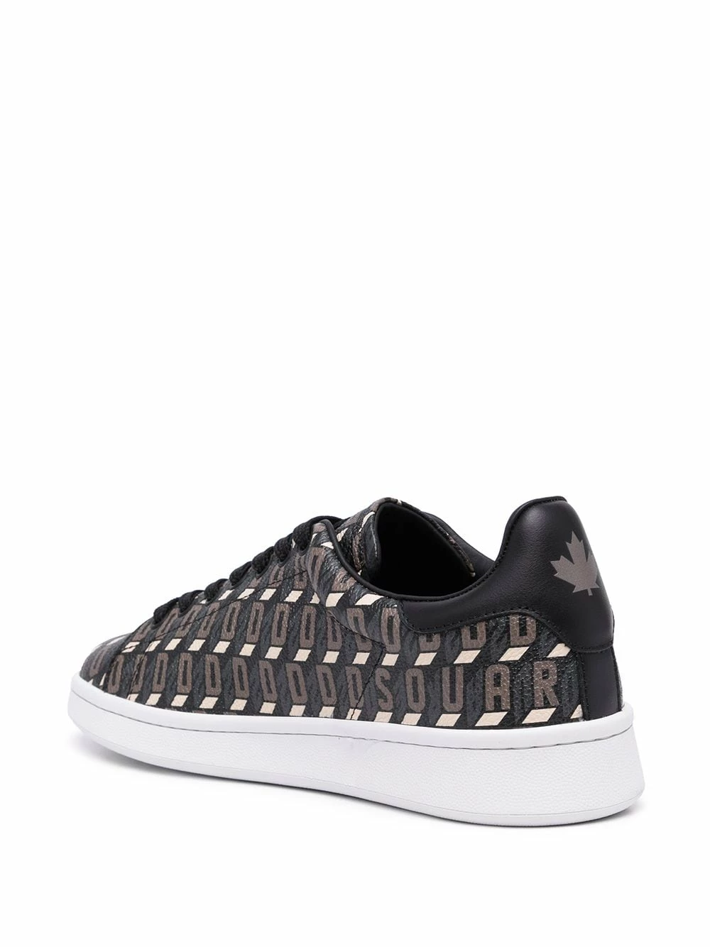 Texture grainée, imprimé monogrammé, fermeture à lacer sur le devant, bout rond, semelle plate en caoutchouc, semelle intérieure à logo. Matière : cuir.