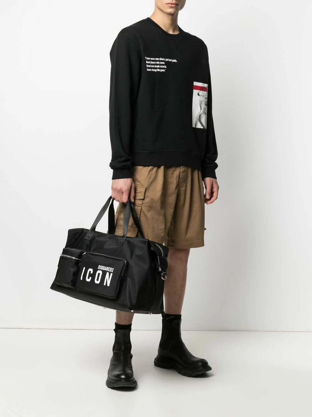 Logo imprimé sur le devant, compartiment zippé sur le devant, fermeture zippée sur le dessus, compartiment principal, anses arrondies, bride porté épaule détachable et ajustable. Couleur : noir.