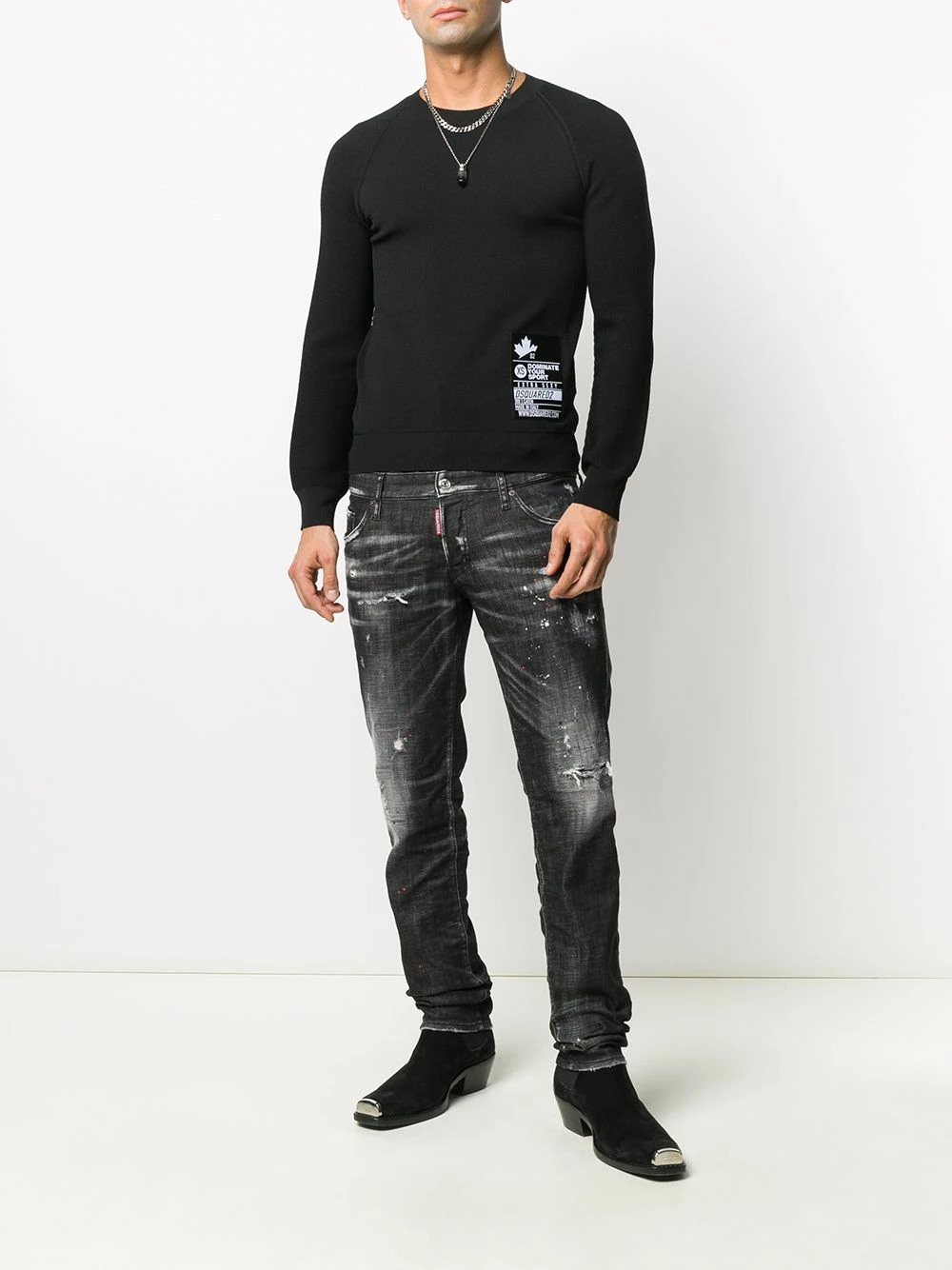 Patch logo sur le devant, encolure ras du cou, manches longues, silhouette ajustée. Couleur : noir.