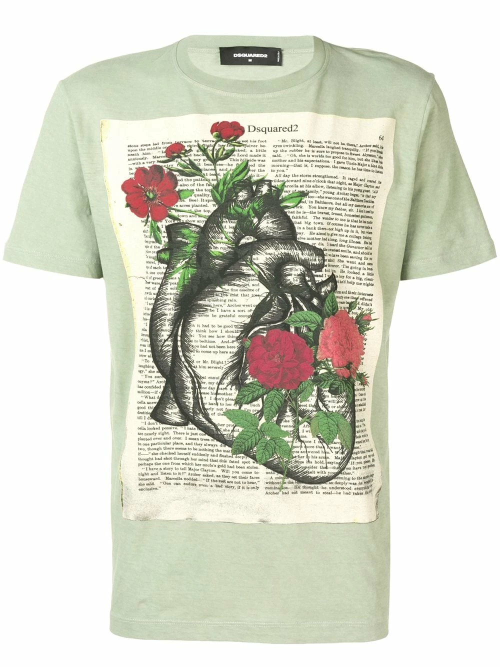 T-shirt à cœur imprimé en coton Dsquared2 avec encolure ras du cou nervurée, manches courtes, ourlet droit et forme détendue.