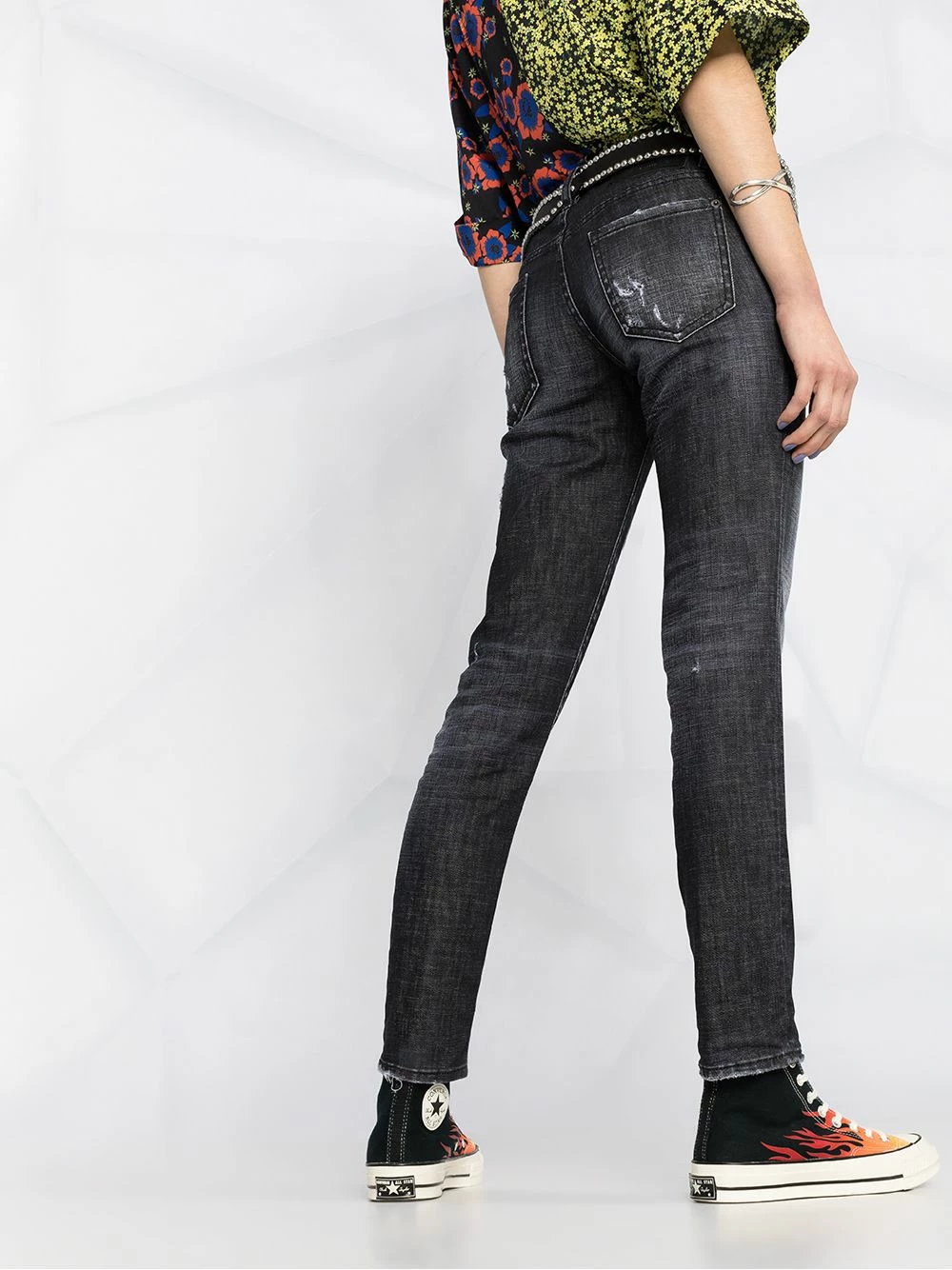 Effet usé, effet délavé, fermeture boutonnée, passants de ceinture, 5 poches classiques, coupe skinny.