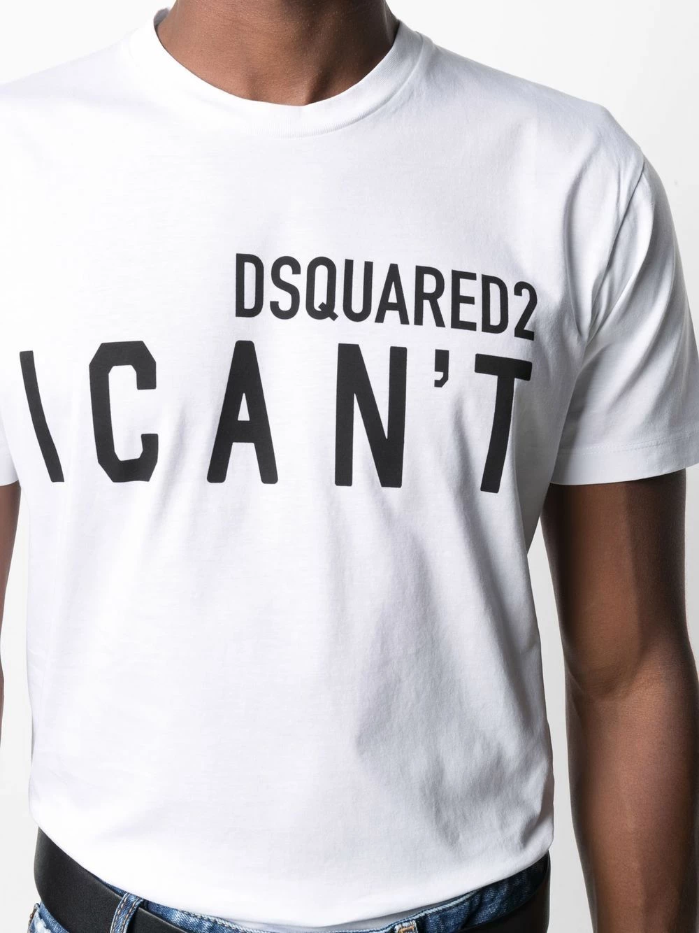 Slogan imprimé, logo imprimé sur le devant, encolure ras du cou, manches courtes, ourlet droit. Couleur : blanc. Matière : coton.