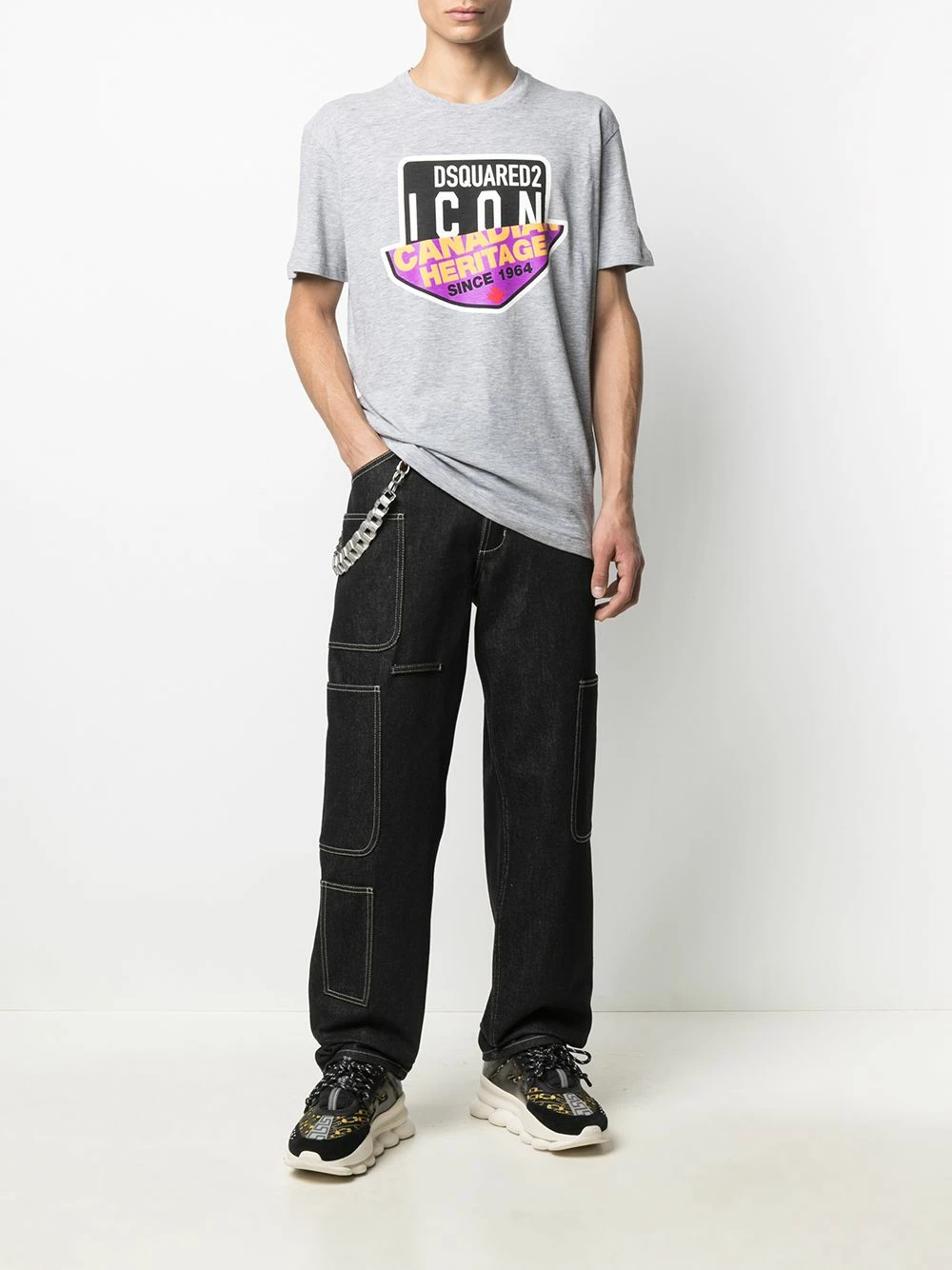 Logo imprimé à la poitrine, encolure ronde, manches courtes, ourlet droit. Couleur : gris. Matière : coton.