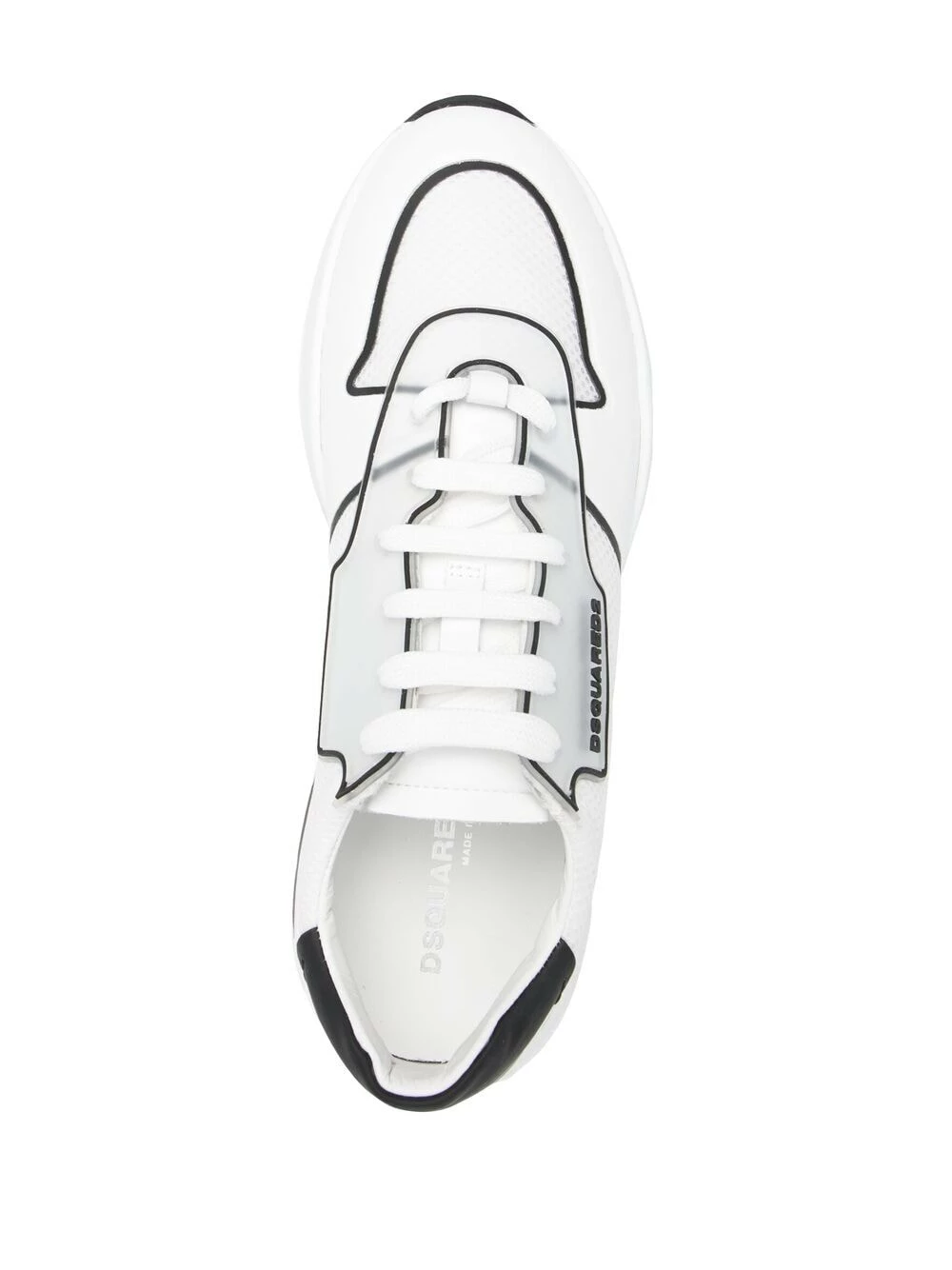 Logo embossé sur le côté, bordure contrastante, bout rond, fermeture à lacer sur le devant, contrefort contrastant, semelle plate en caoutchouc. Couleur : blanc. Matière : cuir.
