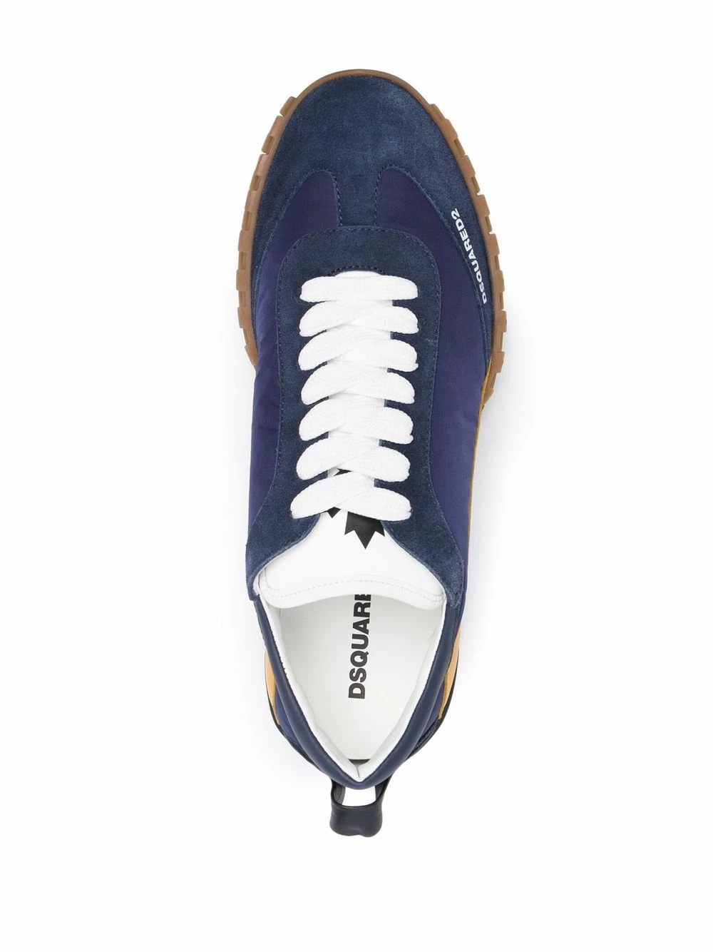 Design à empiècements, fermeture à lacer sur le devant, bout rond, languette d’enfilage au talon, logo imprimé sur le côté, semelle crantée en caoutchouc. Couleur : bleu.