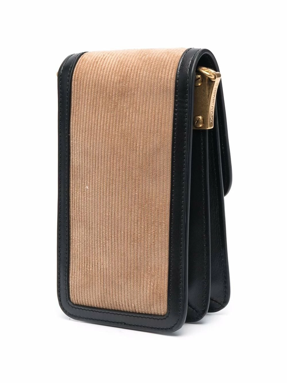 Design à empiècements, plaque logo dorée, détails en velours côtelé, rabat sur le dessus à fermeture magnétique, compartiment intérieur.