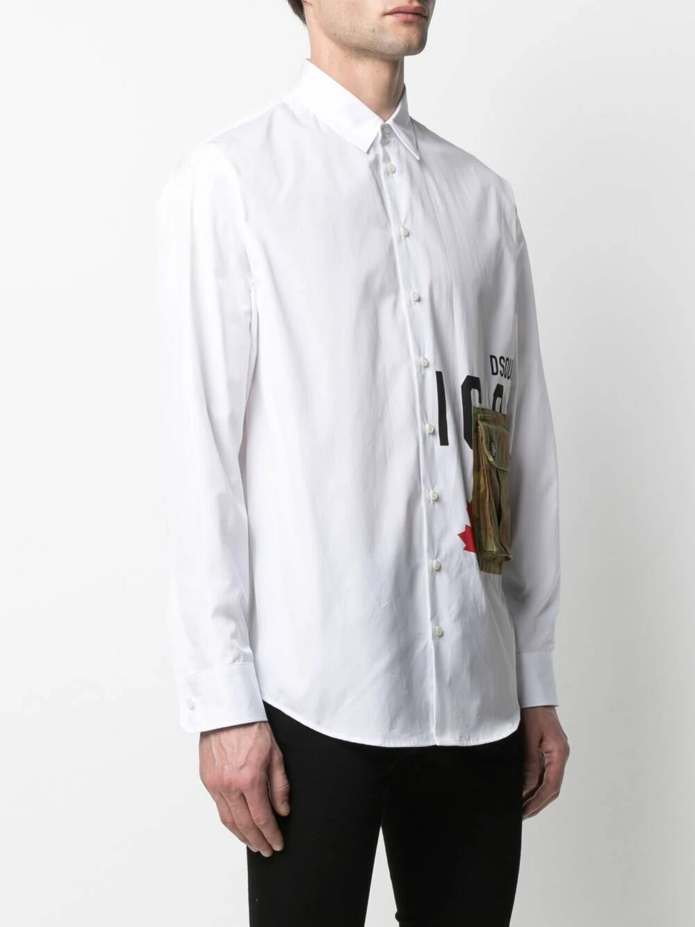 Logo imprimé sur le côté, col classique, boutonnière sur le devant, manches longues, poignets boutonnés, ourlet incurvé. Couleur : blanc. Matière : coton.
