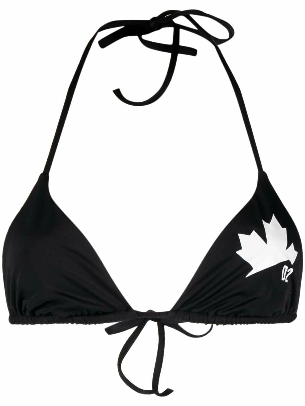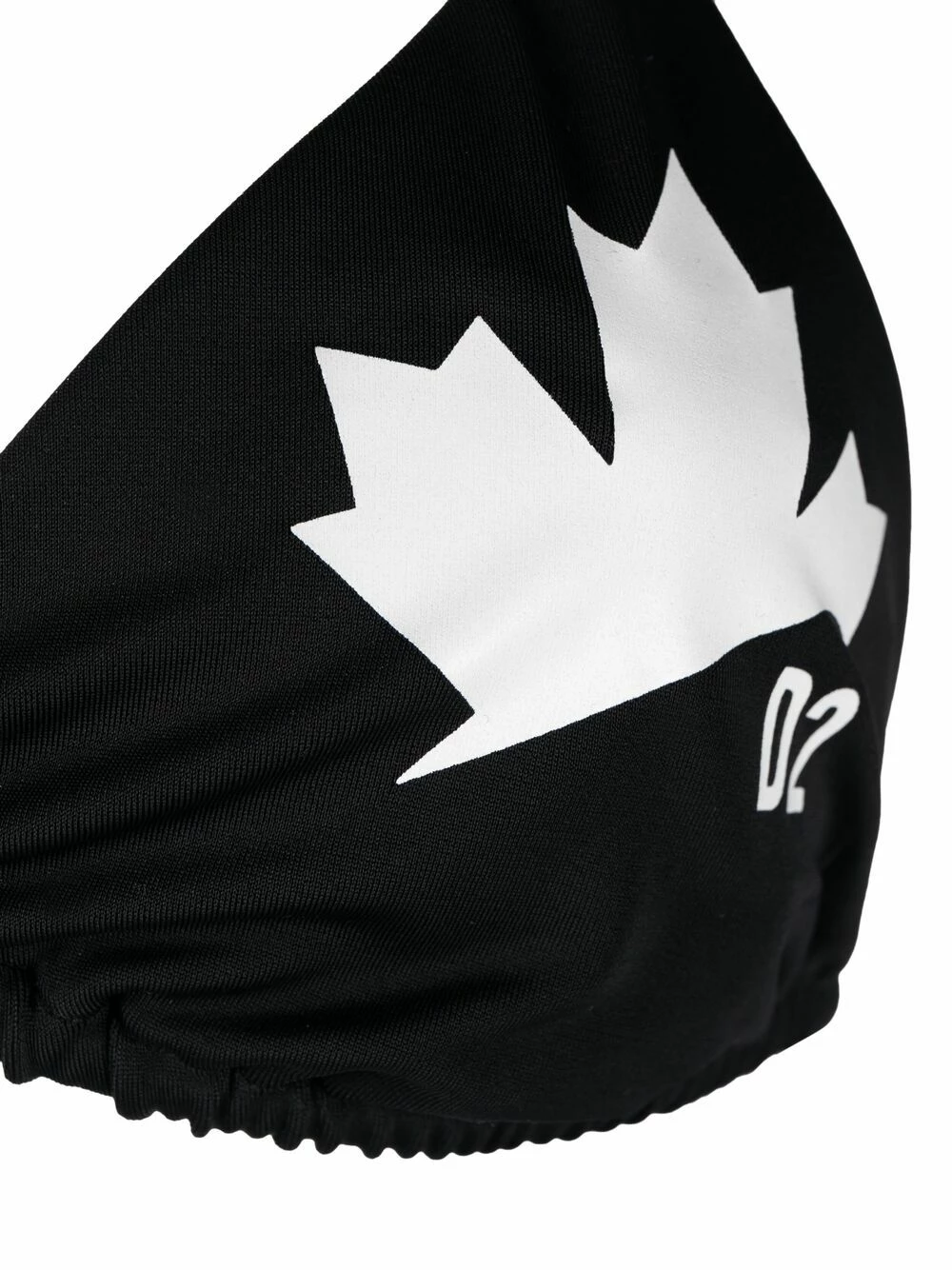 Imprimé feuille d’érable, bonnets triangles, brides porté épaule ajustables, fermeture nouée au dos. Couleur : noir. Veillez à essayer les maillot de bain par-dessus vos propres sous-vêtements.