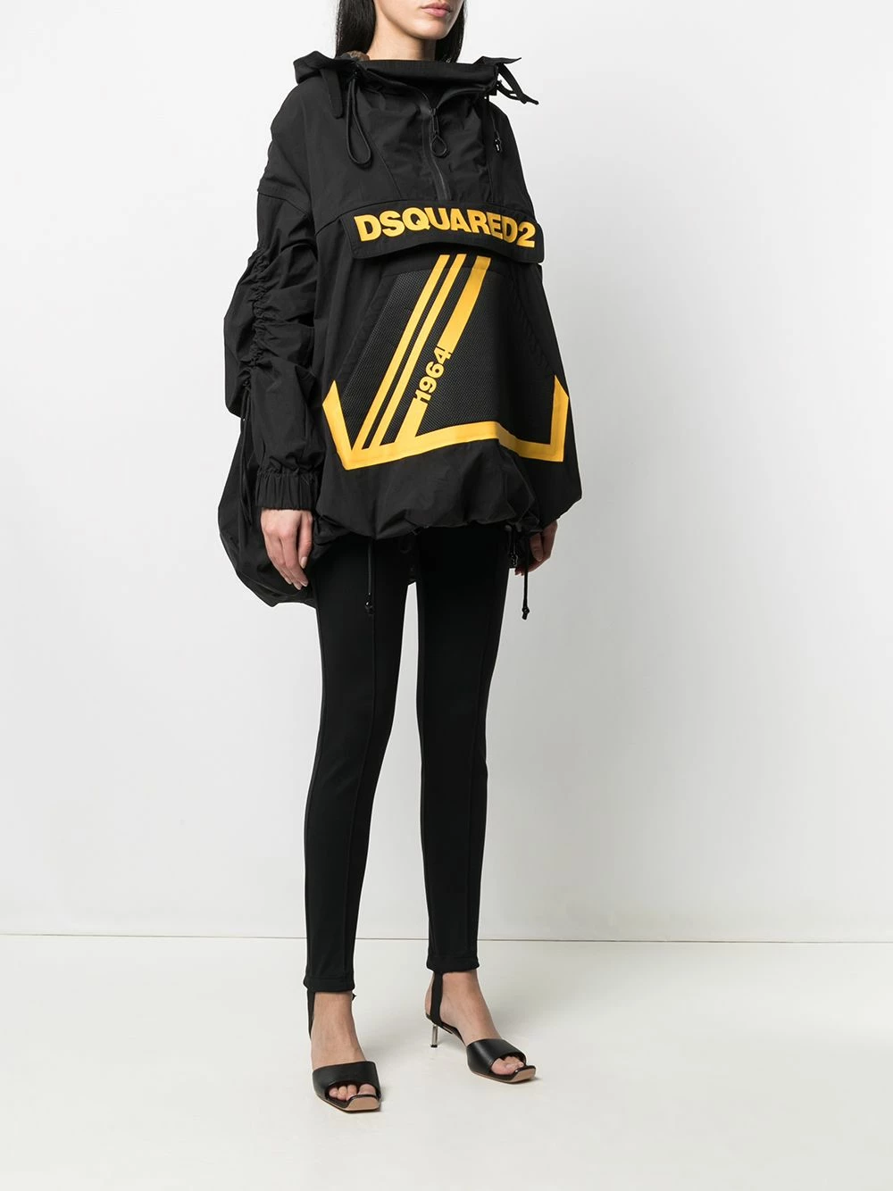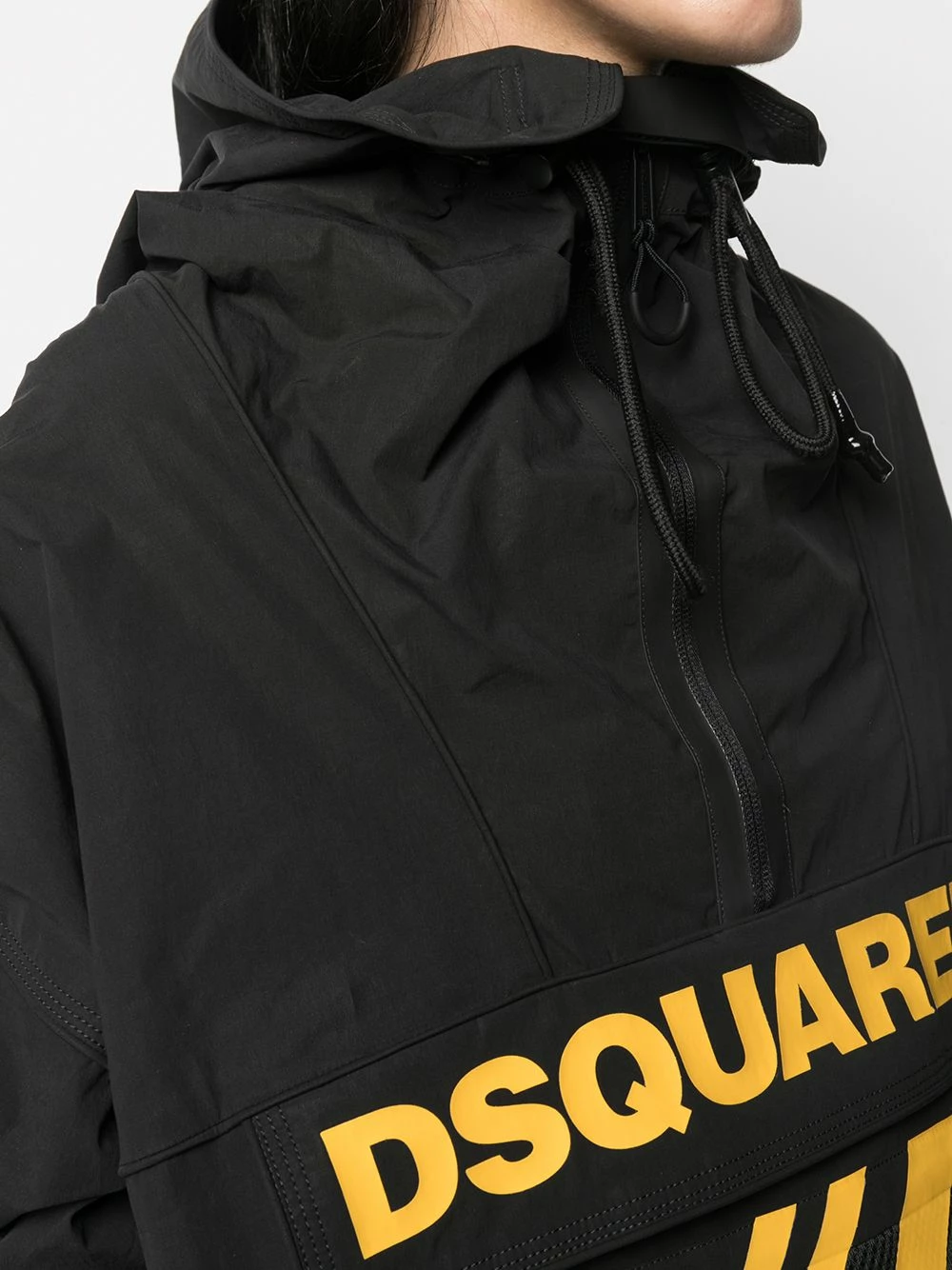 Logo imprimé sur le devant, capuche à lien de resserrage, col montant, fermeture zippée sur le devant, manches longues, poche plaquée sur le devant, poignets à lien de resserrage, ourlet à lien de resserrage. Couleur : noir.