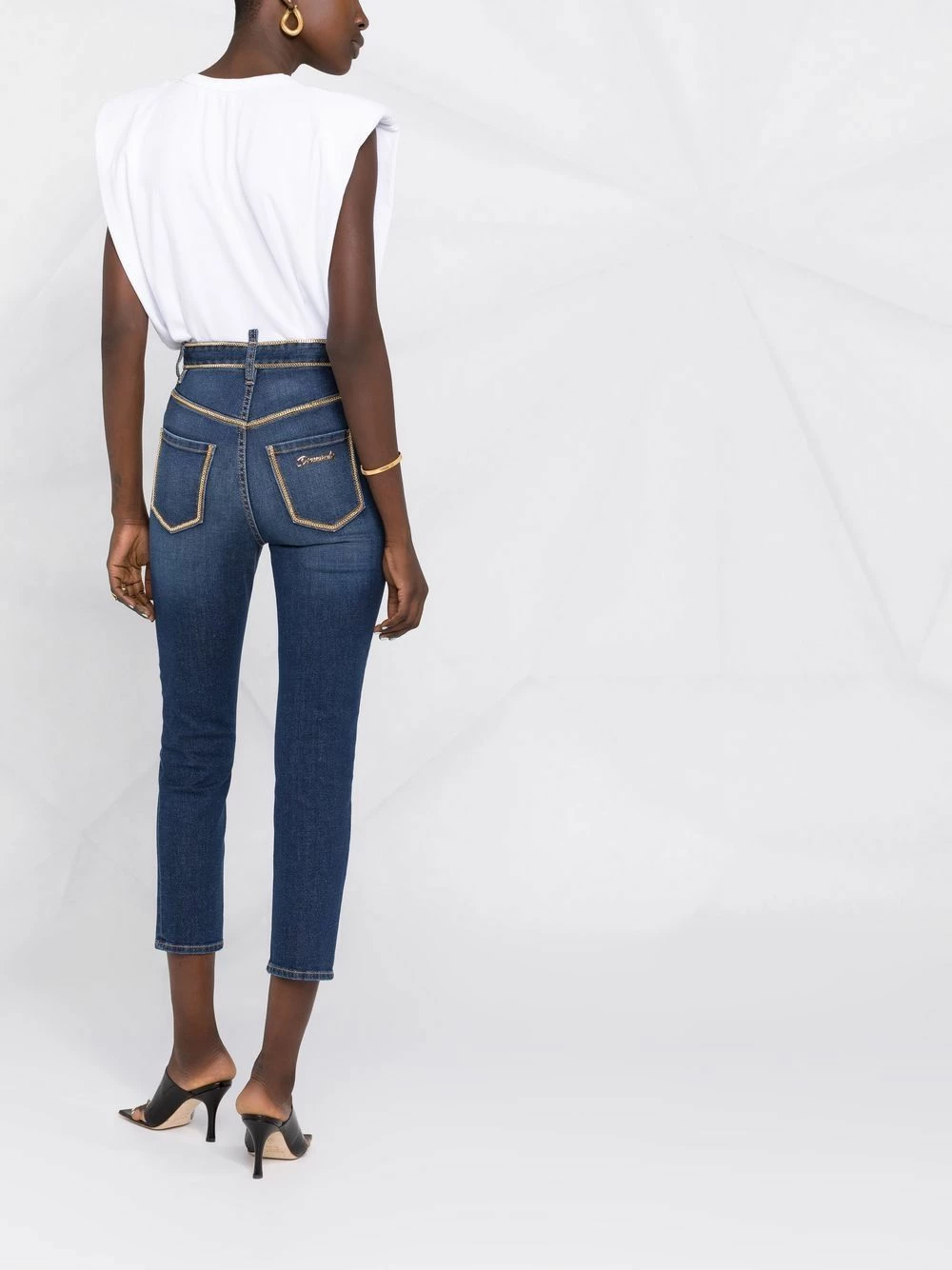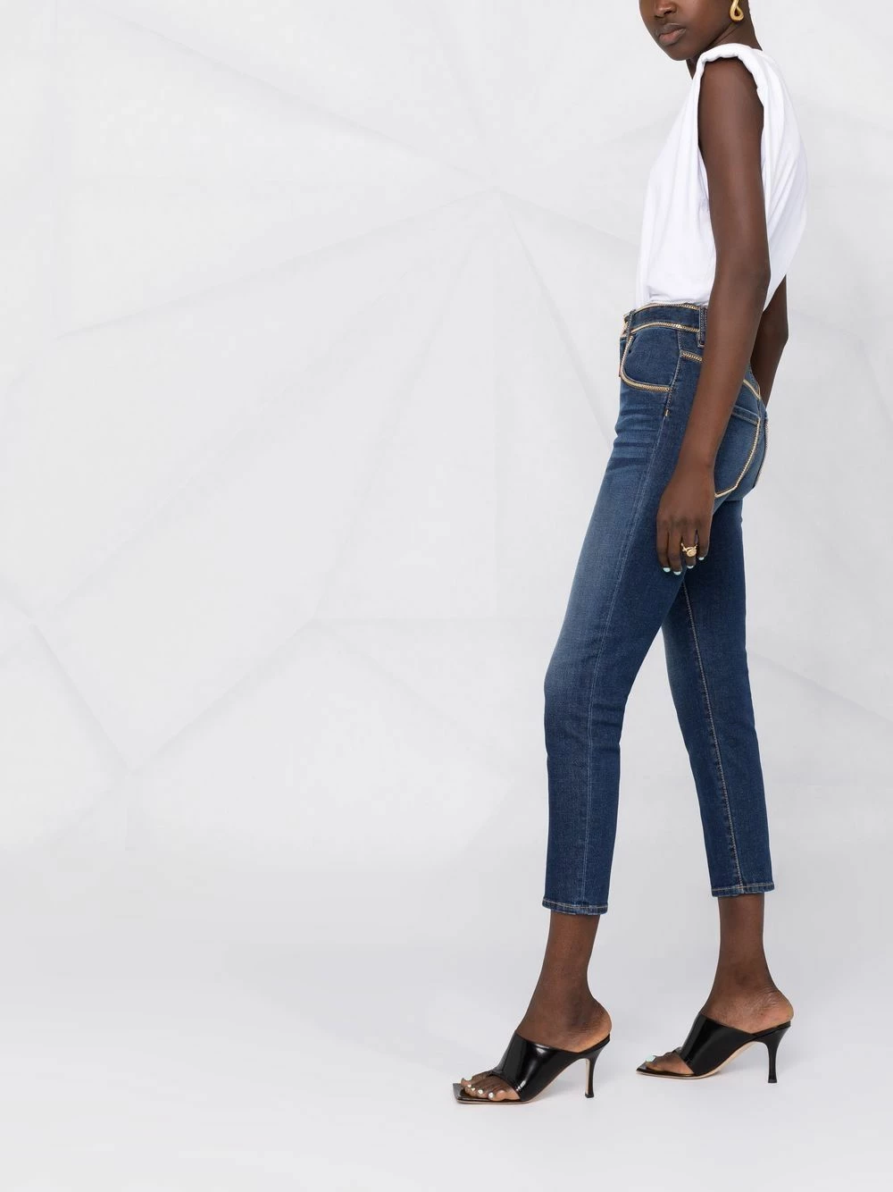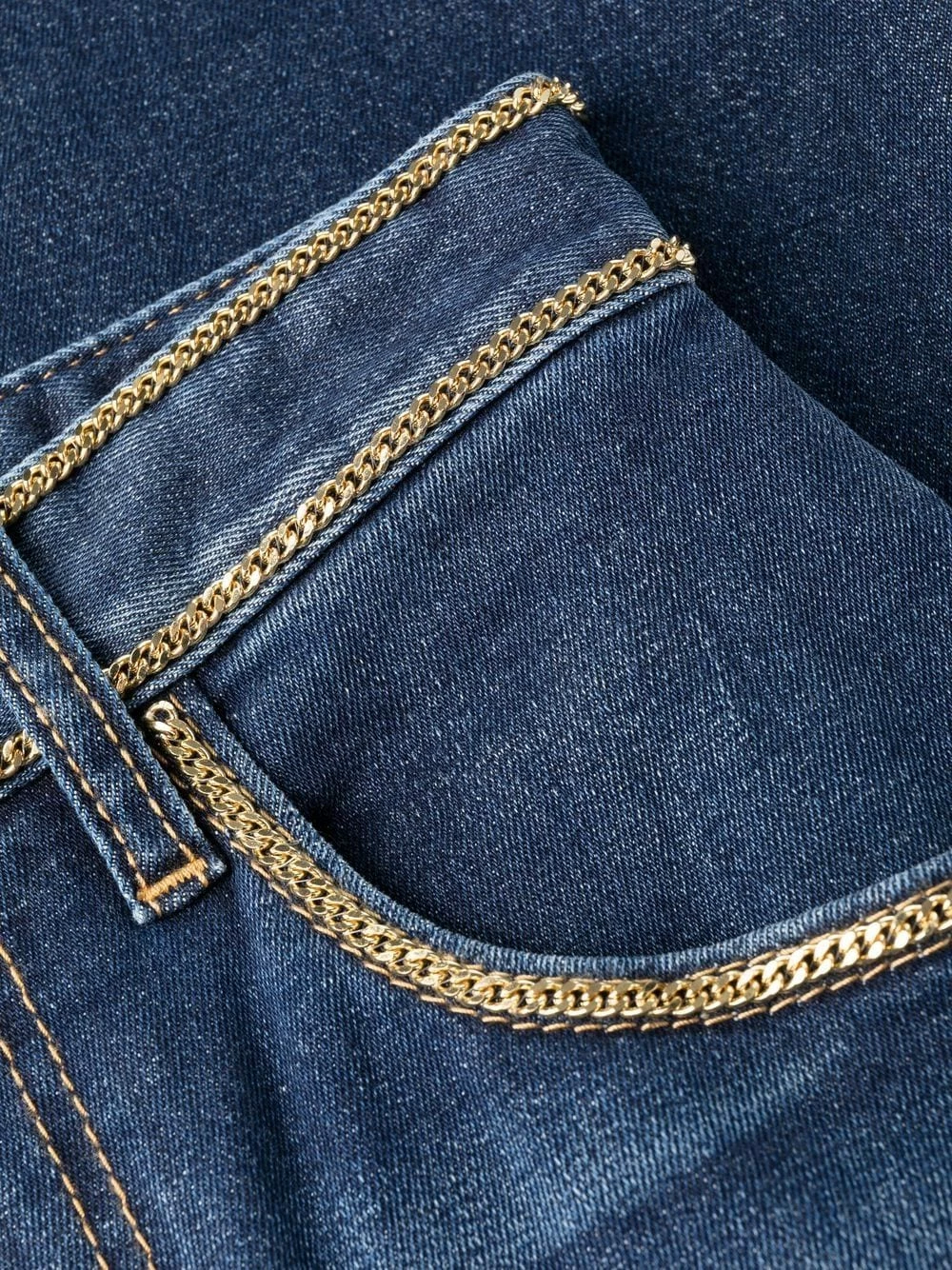 Effet délavé, bordures en chaîne, taille haute, fermeture boutonnée, passants de ceinture, cinq poches classiques, coupe skinny, coupe courte.