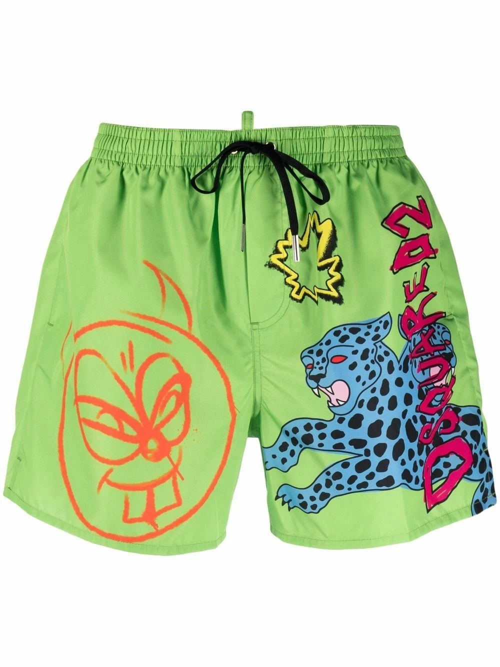 Imprimé graphique intégral, taille élastique à lien de resserrage, coupe courte. Couleur : vert. Veillez à essayer les maillot de bain par-dessus vos propres sous-vêtements.