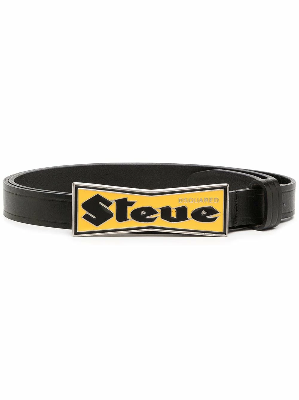 Fermeture à boucle logo, trous percés, taille ajustable. Matière : cuir de veau.