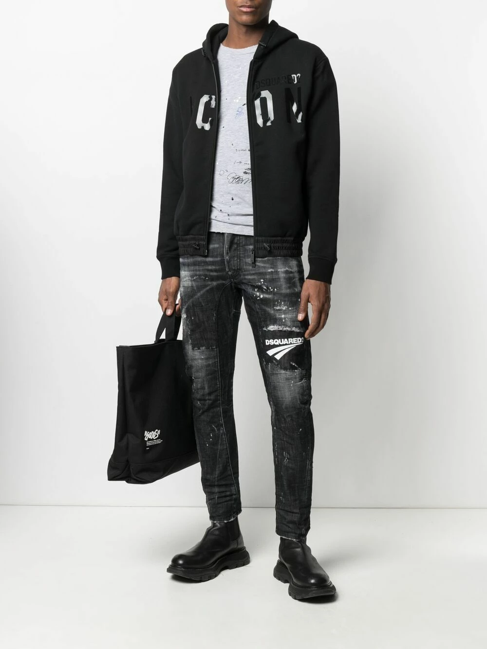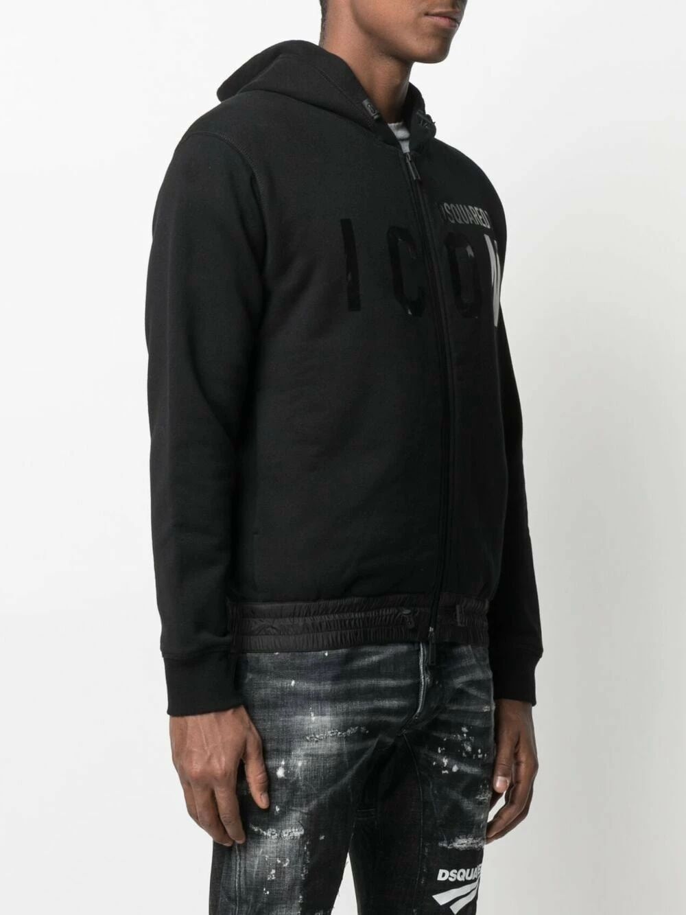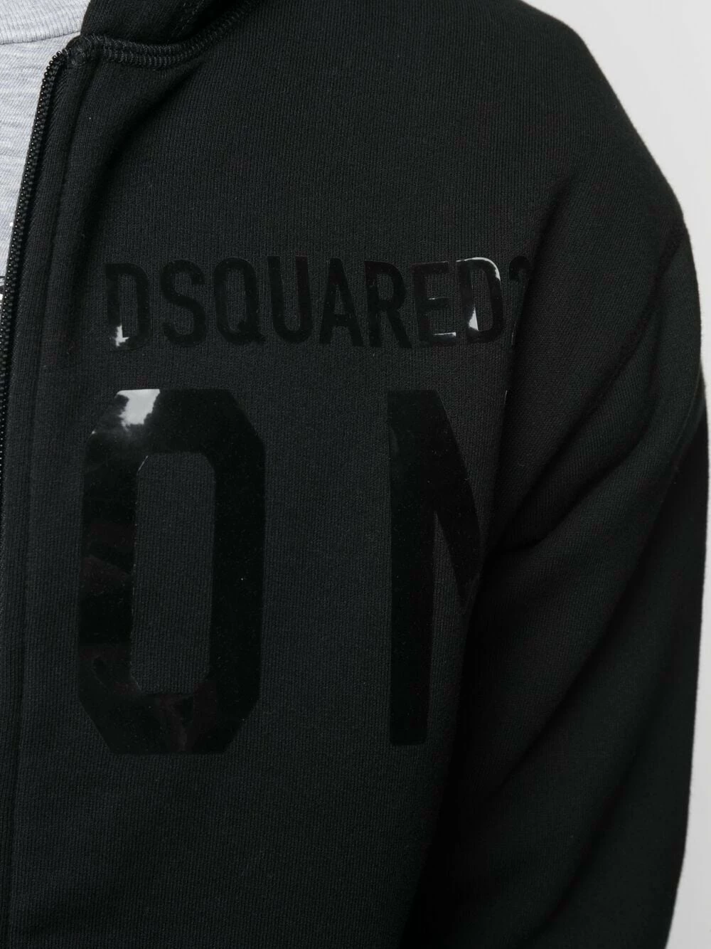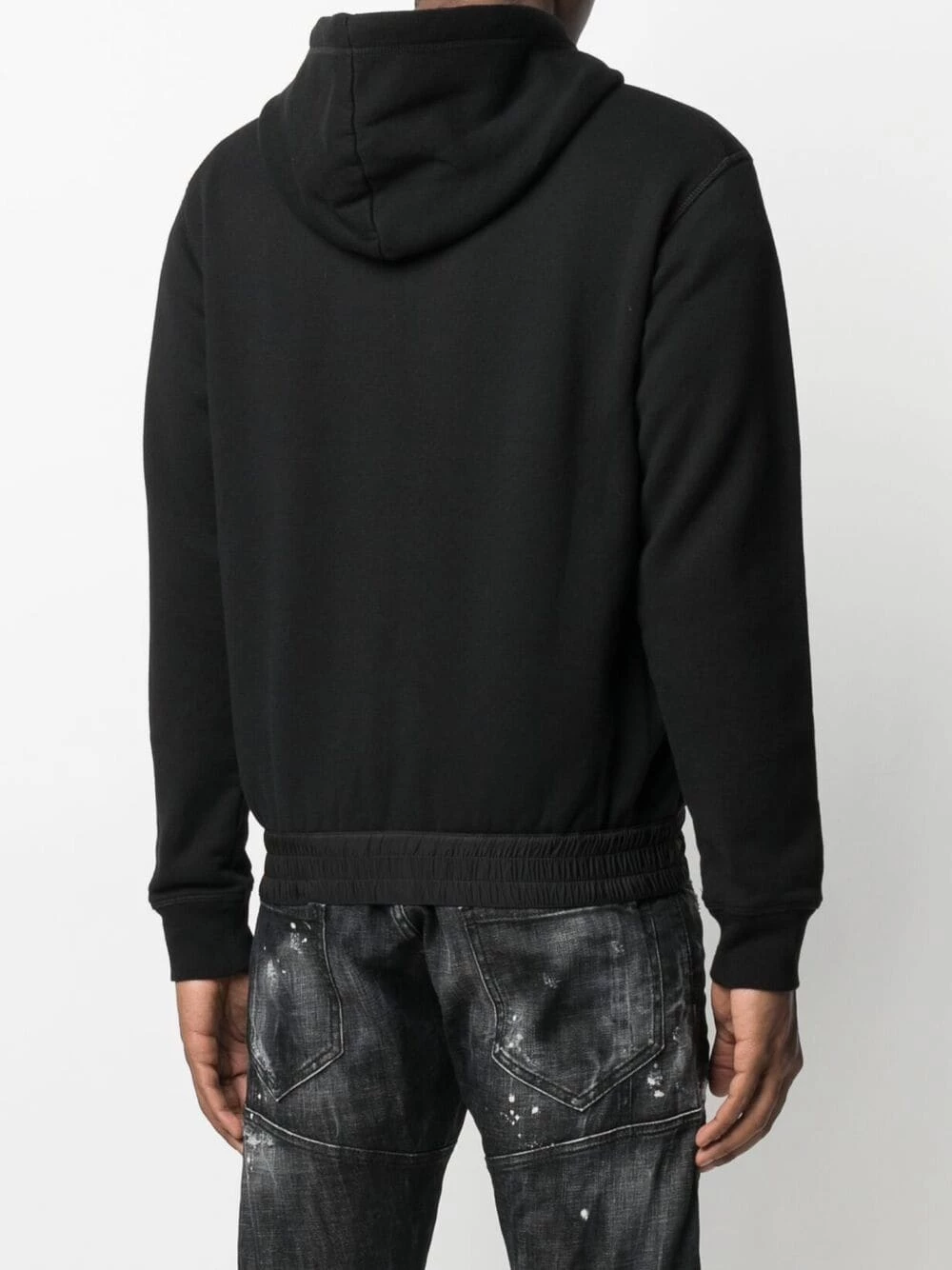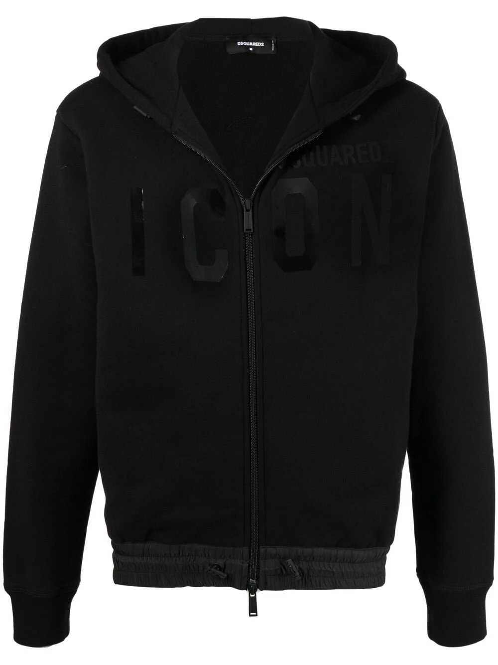 Logo imprimé sur le devant, capuche à lien de resserrage, fermeture zippée devant, manches longues, poignets élastiqués, ourlet à lien de resserrage. Couleur : noir. Matière : coton.