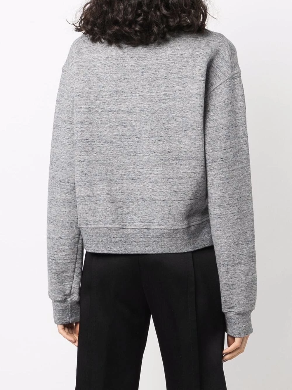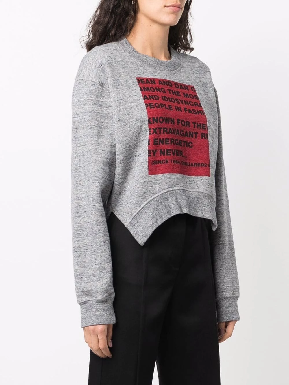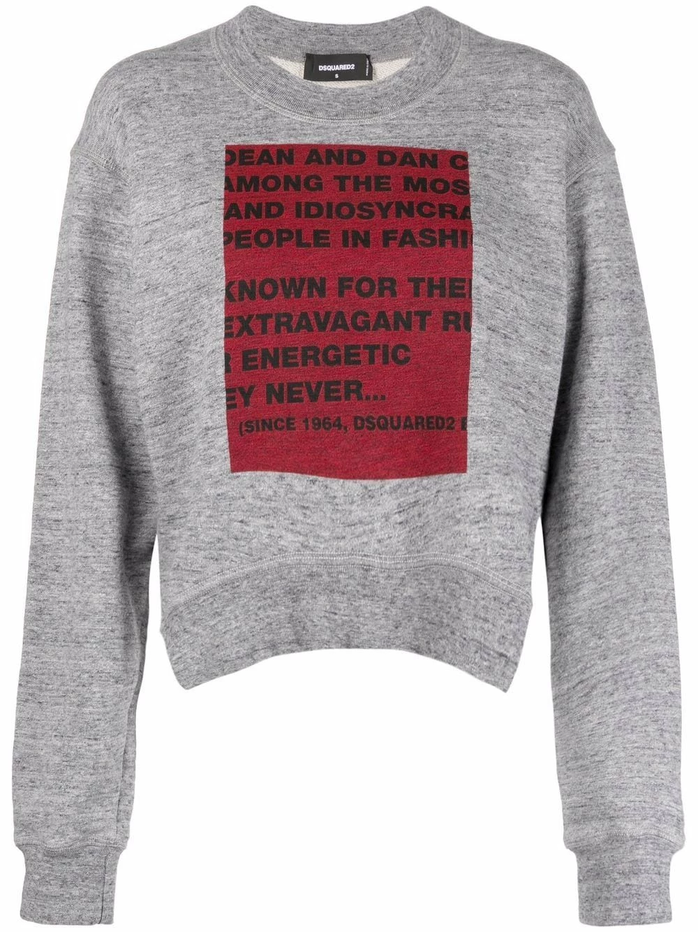 Maille nervurée, slogan imprimé, fentes latérales, encolure ronde, manches longues. Matière : coton.