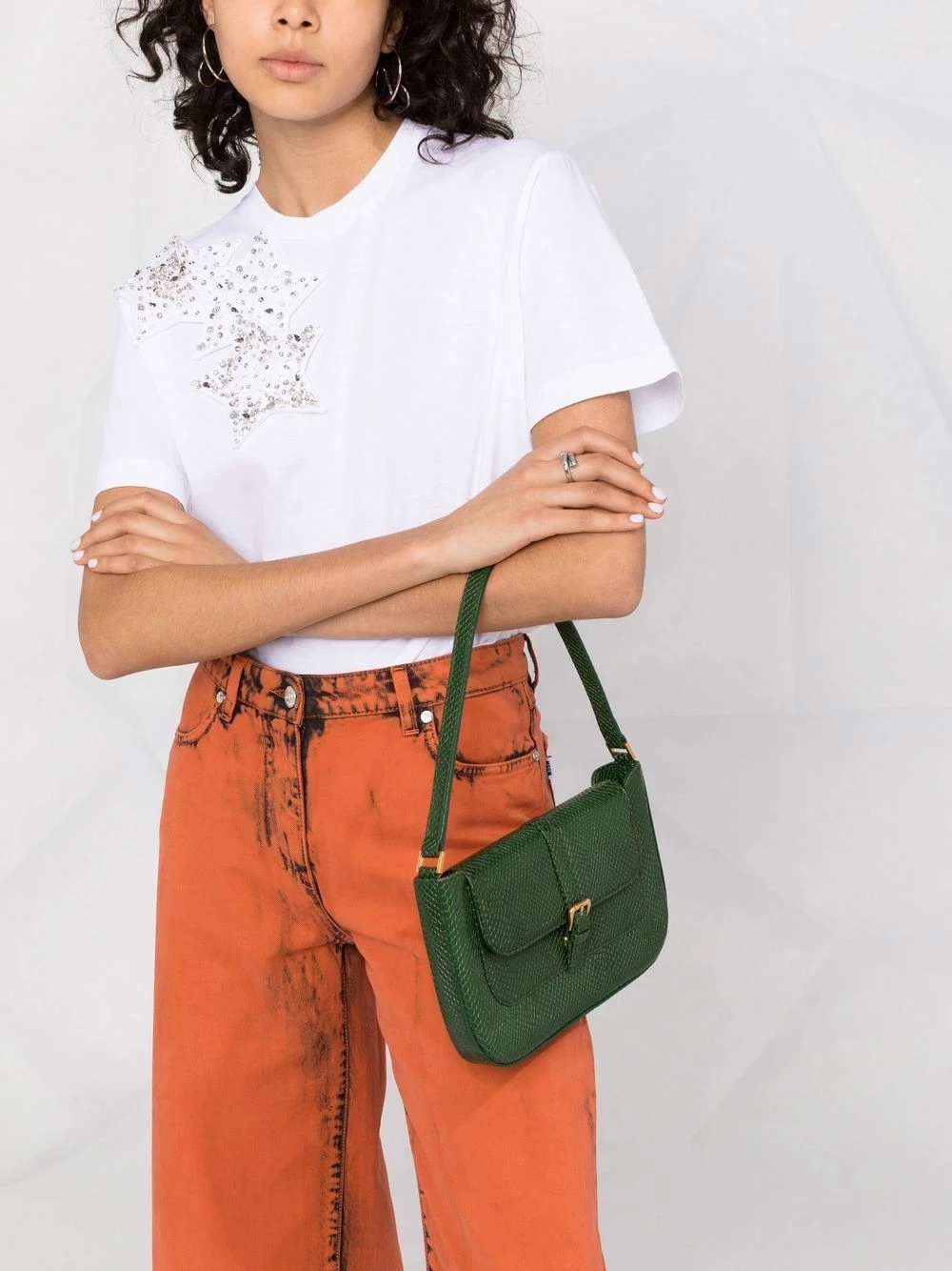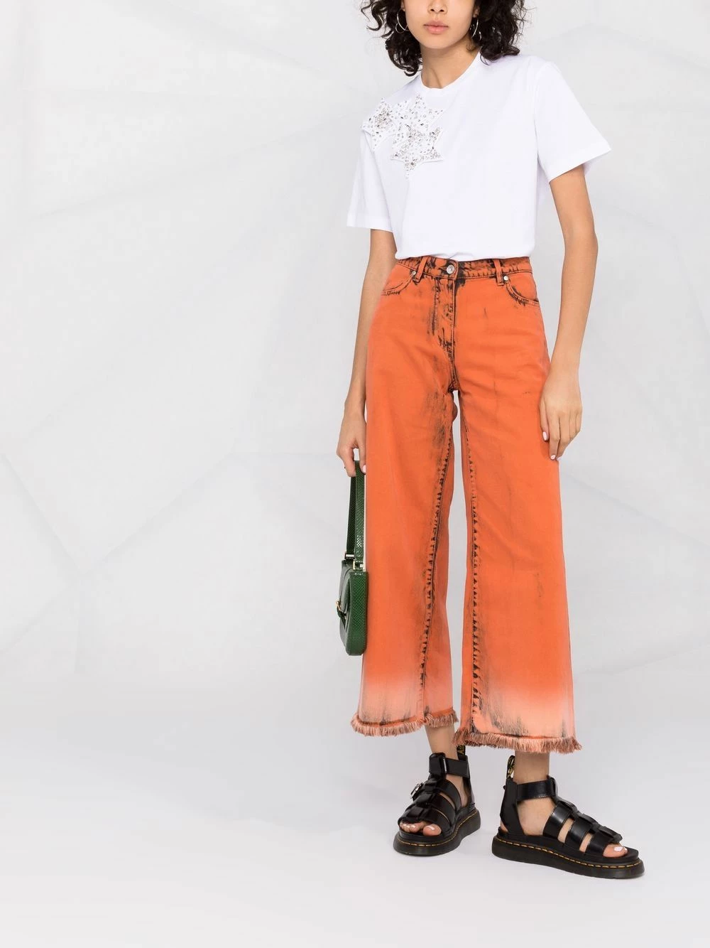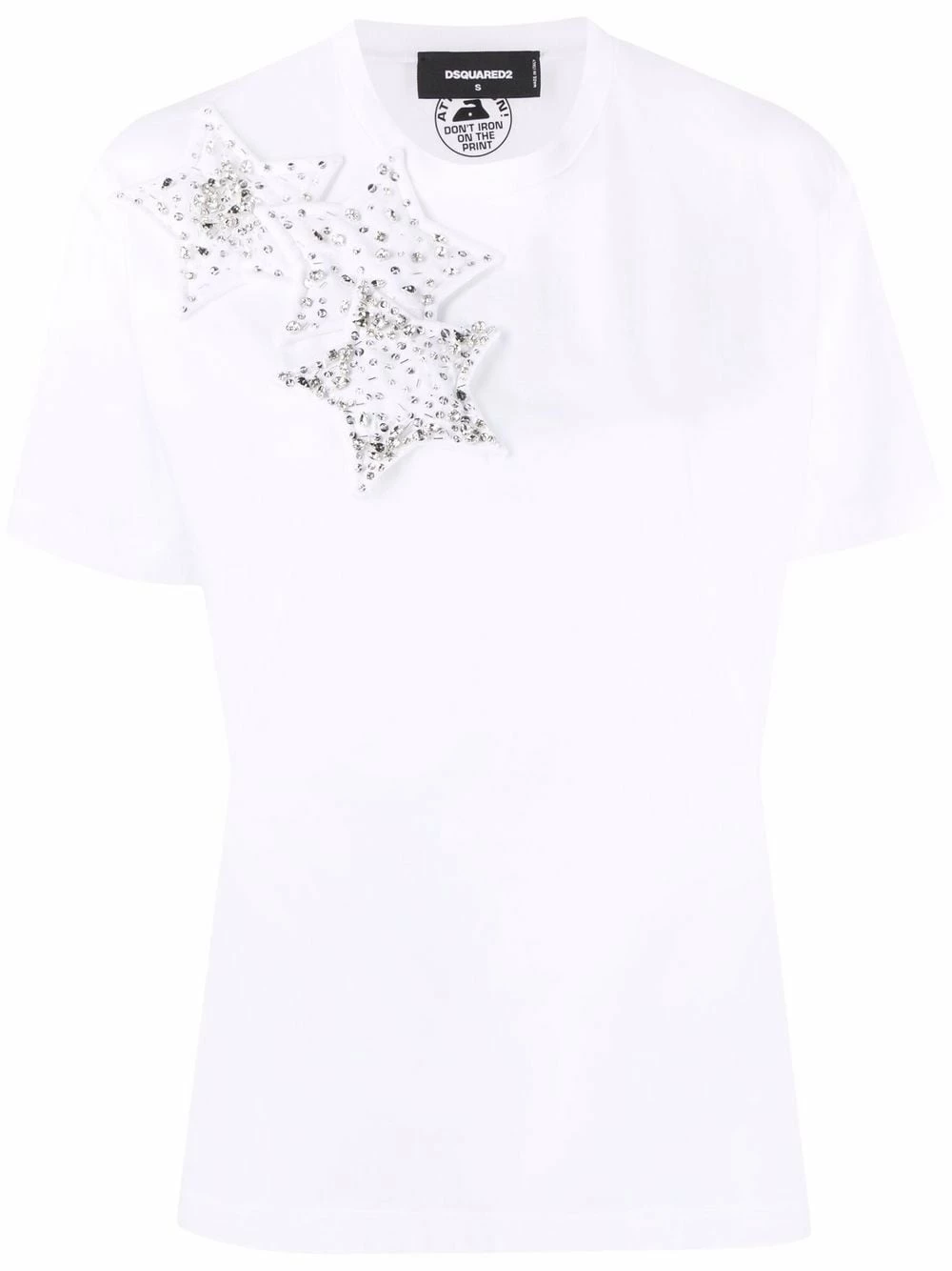 Détail nervuré, patch étoile, détails de perles brodées, logo imprimé à l’arrière, encolure ronde, manches courtes. Couleur : blanc. Matière : coton.