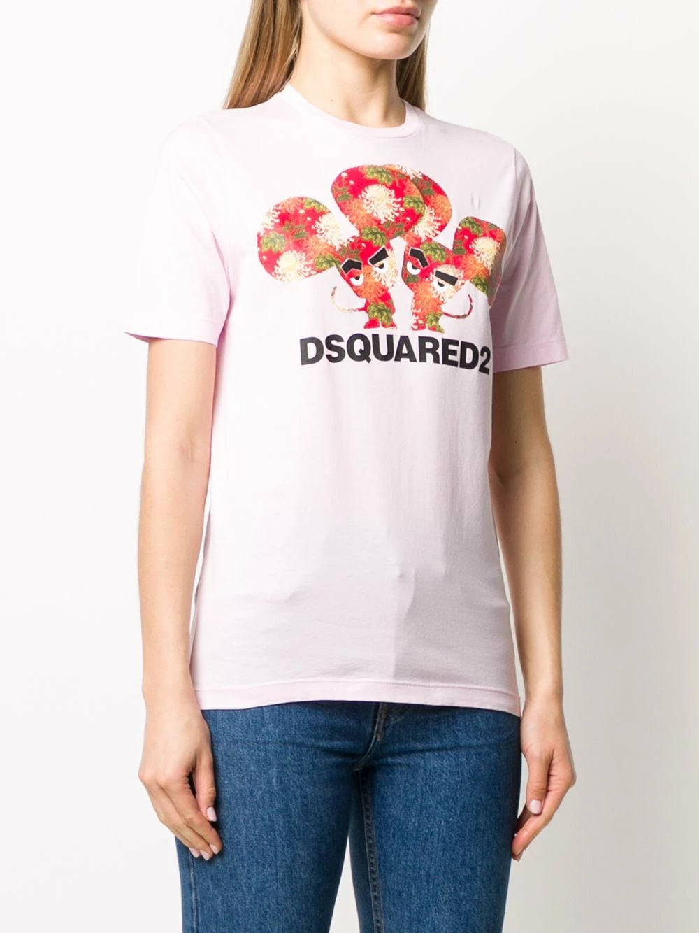 T-shirt imprimé en coton Dsquared2 avec encolure ras du cou, manches courtes, imprimé graphique, logo imprimé sur le devant et coupe slim.