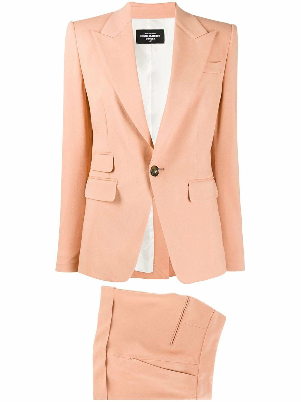 Costume blazer-short en coton mélangé Dsquared2 avec revers pointus, manches longues, poche poitrine, poignets boutonnés, poches latérales, poches arrière passepoilées et ourlet retroussé.