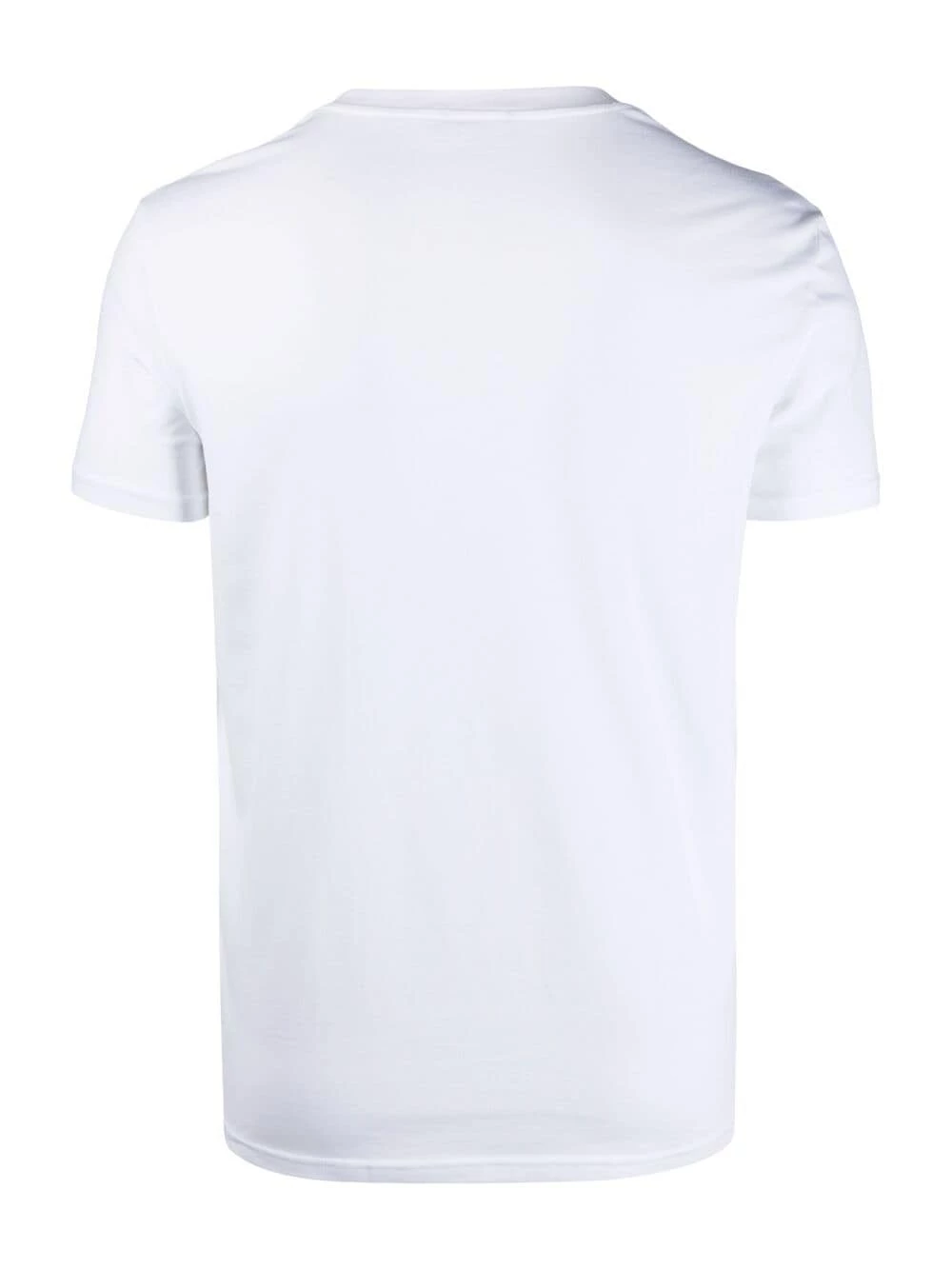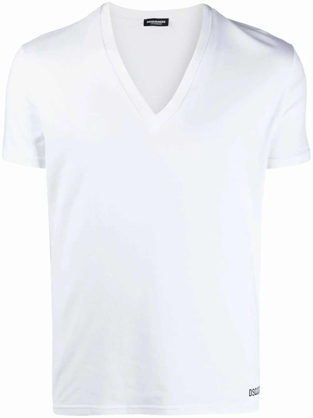 Ourlet à logo imprimé, col v, manches courtes, ourlet droit. Couleur : blanc.