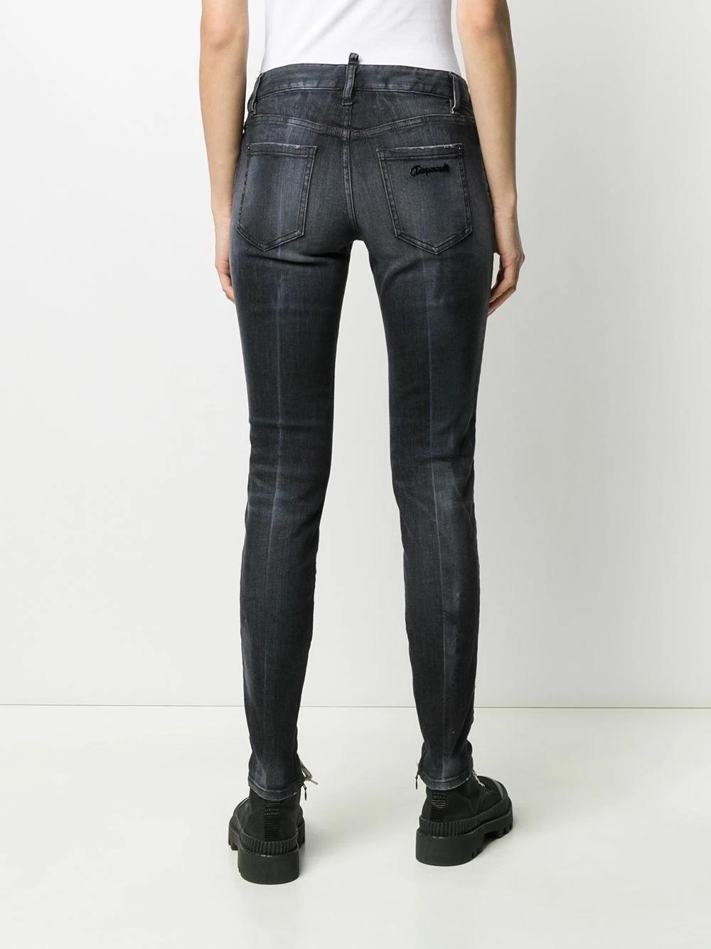 Pantalon fuselé à chevilles zippées en spandex/élasthanne Dsquared2 avec bouton et zip, passants de ceinture, poches latérales, coupe fuselée, zips aux chevilles, effet usé et poche arrière plaquée.