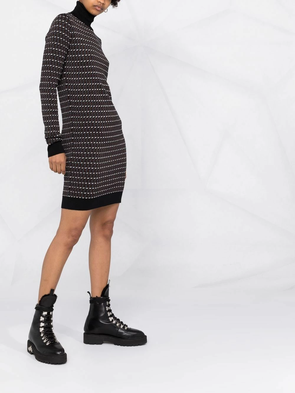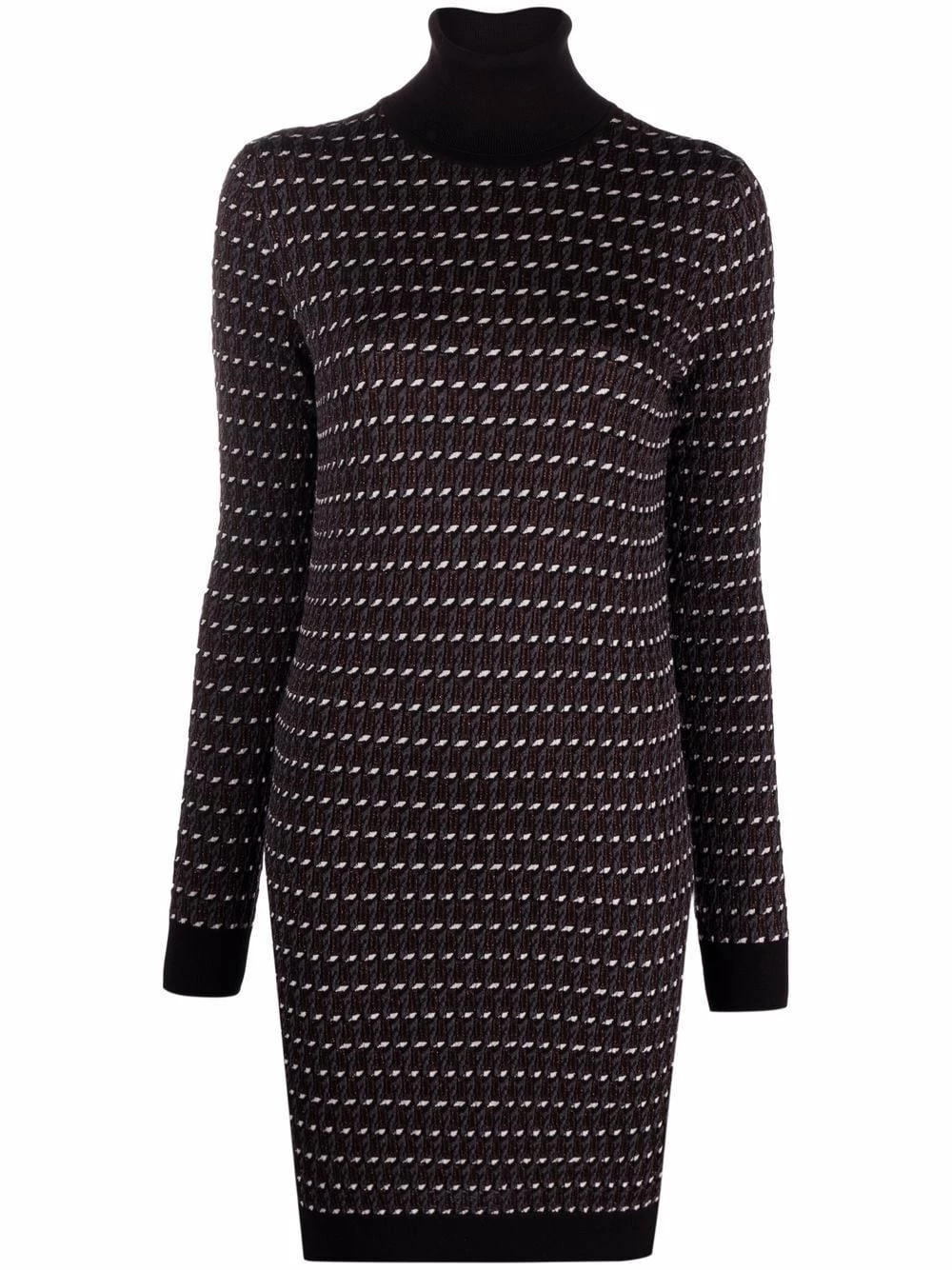 Maille intarsia, col roulé, manches longues, détail nervuré. Couleur : multicolore.